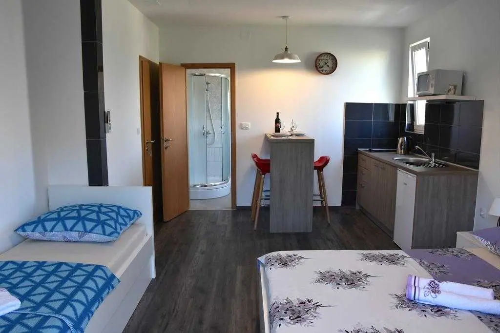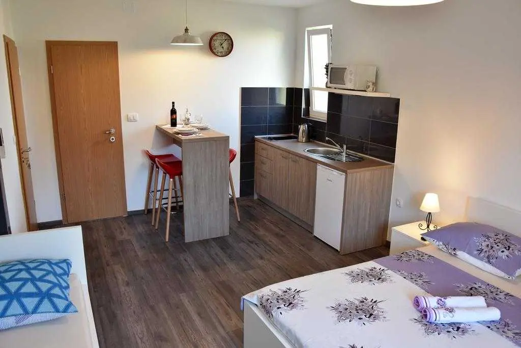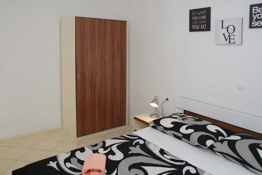 Novo opremljeni (2 + 2), (4 + 2), luksuzni in udobni apartmaji Lovre, zelo blizu morja (2 minuti hoje). Parkiranje je ob hiši. V apartmaju sta brezplačna klimatska naprava in brezžični internet. Lahko sprejme do 10 oseb. Kuhinja je popolnoma opremljena. Vsak apartma ima veliko teraso s pogledom na morje. Okolje je zelo tiho in prostor je dovolj velik za otroke. Najbližja tržnica, kavarna, pekarne se nahajajo 2 minuti od apartmaja. Središče Bibinja, kjer najdete bogato gastronomsko ponudbo, je oddaljeno 5 minut. Zadar in letališče sta oddaljena 10 min vožnje od apartmajev Bibinje in Lovre.