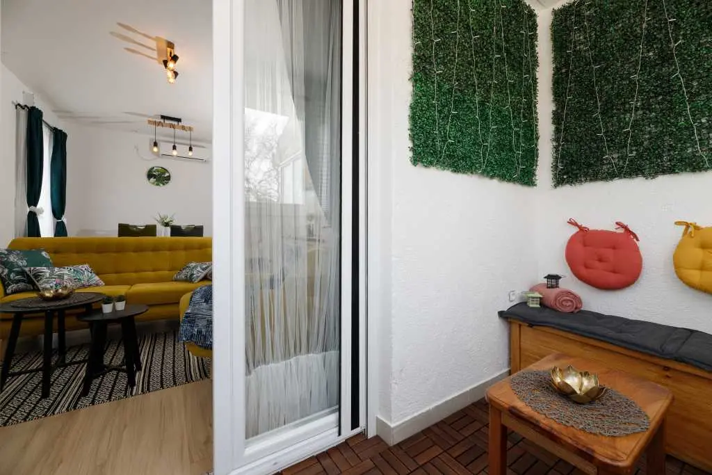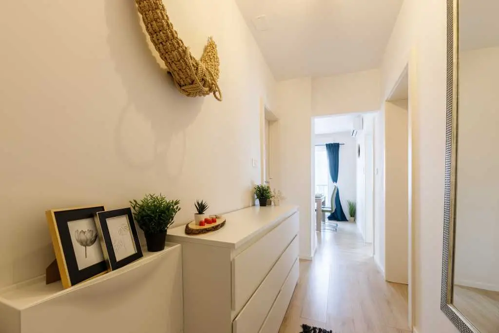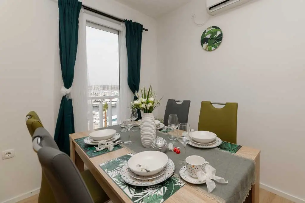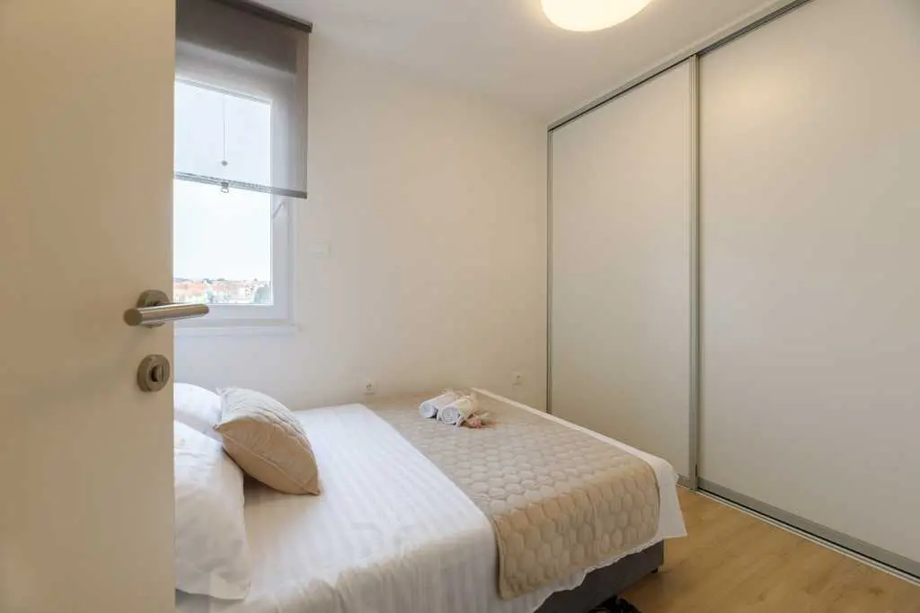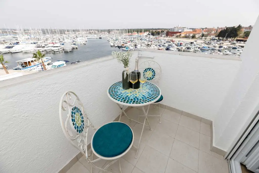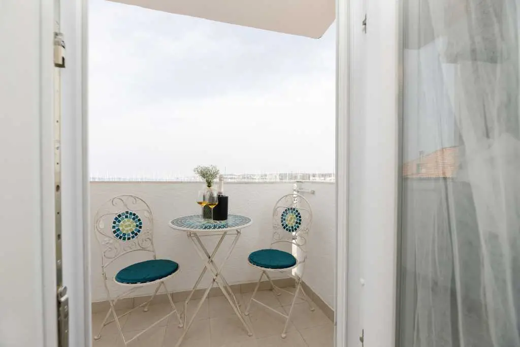 Dvosobno stanovanje v Biogradu na Moru, v centru, 20 m od morja, v 2. nadstropju. Apartma je za 4 osebe. Je popolnoma opremljena, vsaka soba ima zakonsko posteljo, ena soba ima balkon in pogled na morje ter jedilnico. Loggia je prostor za sprostitev z barom. Na voljo je pralni in pomivalni stroj, kavni avtomat, TV, internet, klima, kopalnica ima talno gretje.