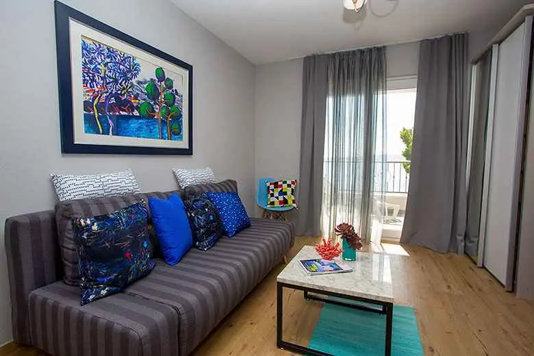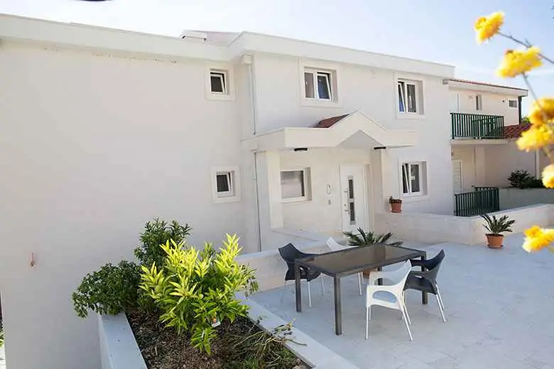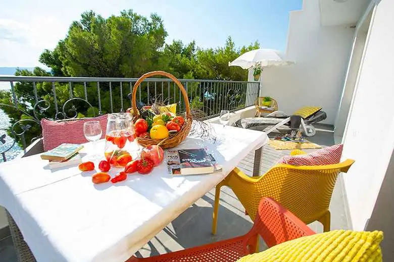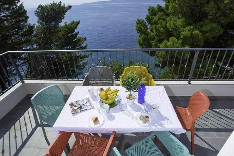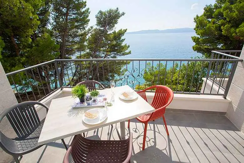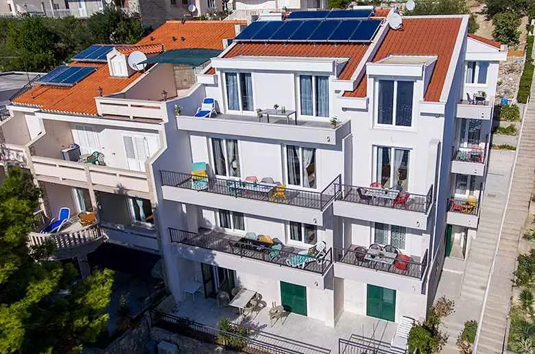 Vila se nahaja ob modrem morju in čudoviti prodnati plaži, obdani z borovci. Nahaja se v predelu Brela, imenovanem Scit, do centra Brela pa je približno 30 minut hoje. Stran od prometa in običajnega poletnega vrveža je idealna za miren oddih. Apartmaji s 3 in 4 zvezdicami so prostorni in moderno opremljeni ter nudijo vse potrebno za prijeten in prijeten dopust.