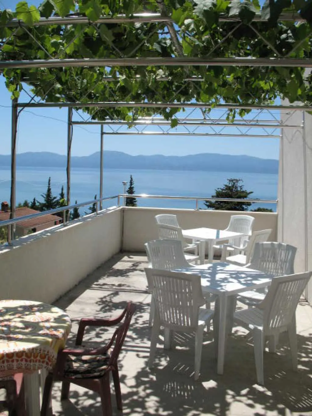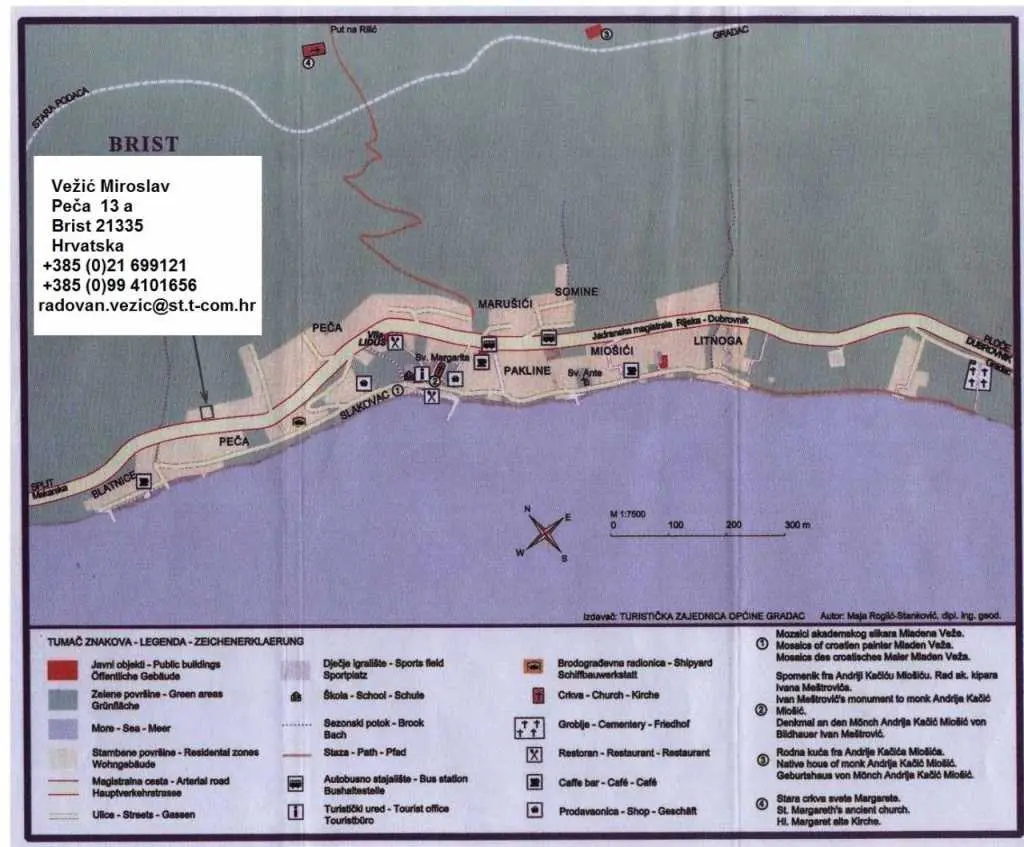 OPIS NASTANITVENEGA OBJEKTA: - Nastanitveni objekt se nahaja v obalnem mestu Brist na naslovu Peča 13a, med Pločami in Makarsko - Pred objektom je 5 parkirnih mest za avtomobile, 40 m od objekta pa je tudi parkirno mesto za vozila do dolžine 10 m - Za objektom je prostor za žar, opremljen z vgrajenim žarom, vodo, elektriko, drvmi in opremo - V 1. nadstropju se nahajajo: Apartma (1) za 4 osebe 44 m2, Apartma (2) za 5 oseb 38 m2, Apartma (3) za 3 osebe 25 m2 - V 1. nadstropju se nahaja tudi pokrita terasa velikosti 25 m2 s pogledom na morje, na kateri so 3 mize in 13 stolov - V 2. nadstropju se nahajajo: Apartma (4) za 2 osebi 23 m2, Soba (5) za 2 osebi 21 m2 - V 2. nadstropju se nahaja tudi nepokrita terasa velikosti 24 m2 z pogled na morje z 2 mizama in 8 stoli - Razdalje do plaž: 70 m vodoravno in 17 m navpično zračne črte, najmanj 170 m peš, najmanj 700 m z avtomobilom OPIS NAČINA DELA: - Prodajamo naše lokalne izdelke: olivno olje, mandlje v lupini, zrele in suhe fige - Oddajamo kratkoročne turistične nastanitve v poletni sezoni od 15.6. do 15.9. vsako leto - Za rezervacijo namestitve je treba zahtevo poslati 10 ali več dni pred začetkom bivanja - Gostov s hišnimi ljubljenčki ne sprejemamo, saj lahko motijo druge goste - Namestitev je gostom na voljo od 14.00 do 22.00 na dan prihoda do 8.00 do 10.00 na dan odhoda - V skladu s hišnim redom je prepovedano povzročanje hrupa med 14.00 in 16.00 ter med 23.00 in 8.00 - Vsi gostje, razen gostov iz sobe (5), lahko brezplačno uporabljajo sobo za žar med 10.00 in 12.00, 17.00 in 19.00 ali med 20.00 in 22.00 - Goste sprejmemo s čisto posteljnino in 1 majhno brisačo na osebo, menjava med bivanjem pa je navedena spodaj - Za bivanje od 1 do 13 dni velja pravilo, da se posteljnina in brisače med bivanjem ne menjajo - Za bivanje od 14 do 20 dni velja pravilo, da se posteljnina in brisače menjajo enkrat na 7. do 10. dan bivanja, ne pa ob nedeljah - Za bivanje 21 dni ali več se posteljnina in brisače menjajo vsakih 7 dni na dan v tednu, ki ga izbere gost, ne pa ob nedeljah - Če gostje zahtevajo pogostejšo menjavo posteljnine, kot je praviloma, ali potrebujejo velike brisače, se jim to dodatno zaračuna. CENA IN NAČIN PLAČILA: - Skupna cena bivanja = (čiščenje 5 EUR/m2 + bivanje – odhod v torek ali sredo) x (1 + vsota ustreznih popravkov cen v % / 100) - Za bivanje 7-9 dni se cena zniža za -5 %, za bivanje 10 dni ali več pa za -10 %. - Popravek cene v % zaradi števila oseb = 25% x (število oseb – ponujena kapaciteta) / ponujena kapaciteta - Popust se prizna za akontacijo - X% za X mesecev (0,3 < X < 15) od povpraševanja za namestitev do začetka bivanja - Popusti za dolžino bivanja, za manjše število oseb in za akontacijo se seštevajo tako, da je lahko najvišji popust - 38% - Cena vključuje: davek in turistično takso, čiščenje namestitve pred bivanjem, uporabo namestitve v skladu s hišnim redom, posteljnino, klimatsko napravo, brezžični dostop do interneta (Wifi), SAT-TV, eno parkirno mesto na apartma/sobo, uporabo 2 teras, ki sta skupni za vse goste, uporabo prostora za žar za vse goste, razen za goste v sobi (5) - Plačilo se delno izvede kot akontacija, preostanek do polne cene pa se plača z gotovino prvi dan bivanja, ker ne sprejemamo kartic SPREMEMBA DATUMA, ODPOVED REZERVACIJE IN VRAČILO AKONTACIJE: - Če odpovemo vašo rezervacijo, 100 % akontacije vam bomo povrnili takoj, ko nam pošljete številko vašega bančnega računa. - Če želite spremeniti datum rezervacije in vam lahko ponudimo nov datum v isti sezoni, ki vam ustreza, se stara rezervacija prekliče z vašim sprejemom predračuna za novo rezervacijo, 100 % akontacije pa postane akontacija za novo rezervacijo. - Če želite spremeniti datum rezervacije in vam ne moremo ponuditi novega datuma, ki vam ustreza, lahko obstoječo rezervacijo obdržite ali pa jo prekličete in dobite povračilo akontacije v skladu s spodnjimi pravili. - Če rezervacijo prekličete pred 1. majem, vam bomo 75 % akontacije povrnili takoj, ko nam pošljete številko vašega bančnega računa. - Če rezervacijo prekličete od 1. maja do 25 dni pred rezerviranim datumom, vam bomo v septembru istega leta povrnili 50 % akontacije. - Če rezervacijo prekličete manj kot 25 dni pred začetkom rezerviranega datuma, vam bomo v septembru istega leta povrnili 25 % akontacije. - Če rezervacijo ne prekličete. rezervacijo in ne pridete na rezervirani datum, izgubite pravico do vračila akontacije