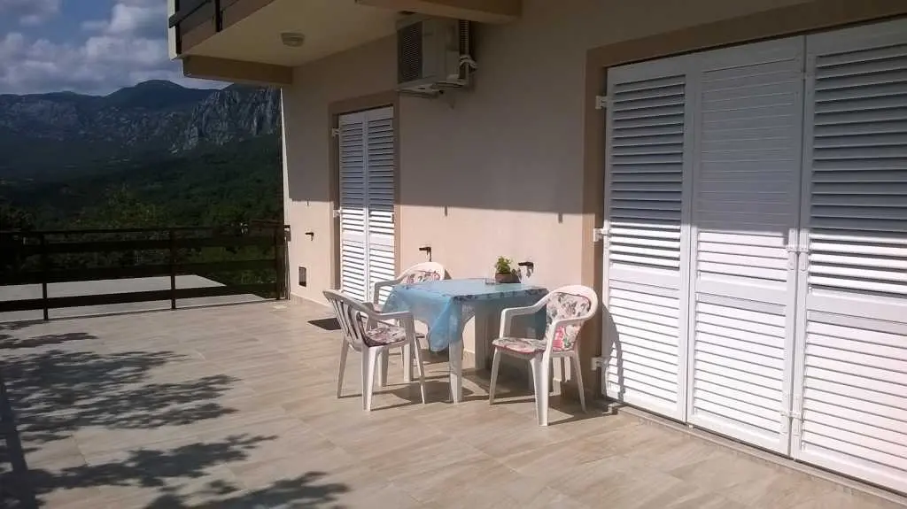 Apartma ima 120 m2 in veliko teraso s pogledom na morje. Sestavljen je iz 2 spalnici s kopalnico, kuhinjo in dnevno sobo z dodatnim ležiščem in ločeno kopalnico. Ima klimo, WiFi internet, parkirišče, bazen za otroke z ležalniki na vrtu, žar - vse vključeno v ceno apartmajev in gostje so vam na voljo. Primeren je za družine z otroki. Nahaja se v mirnem predelu mesta in v zelenju.