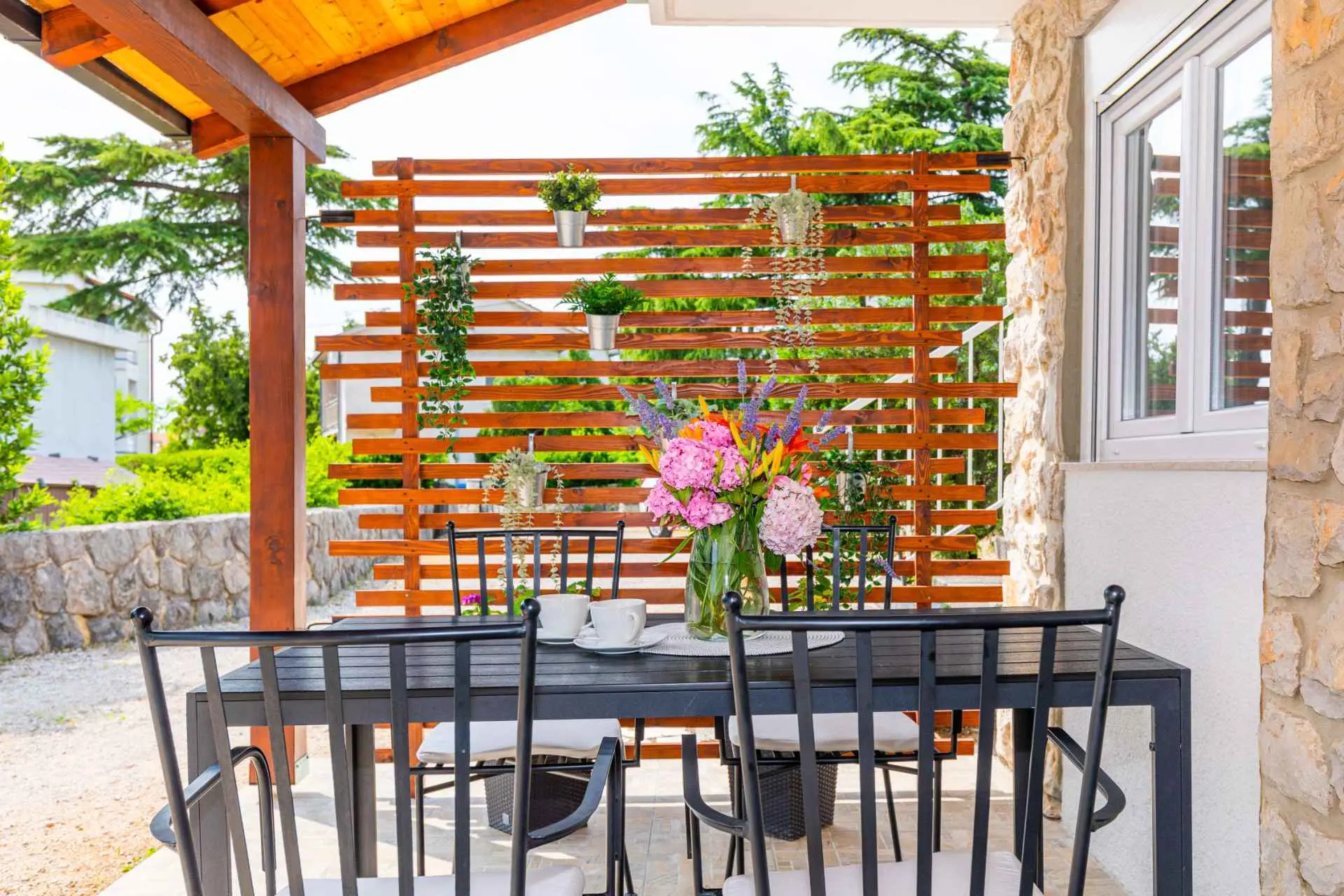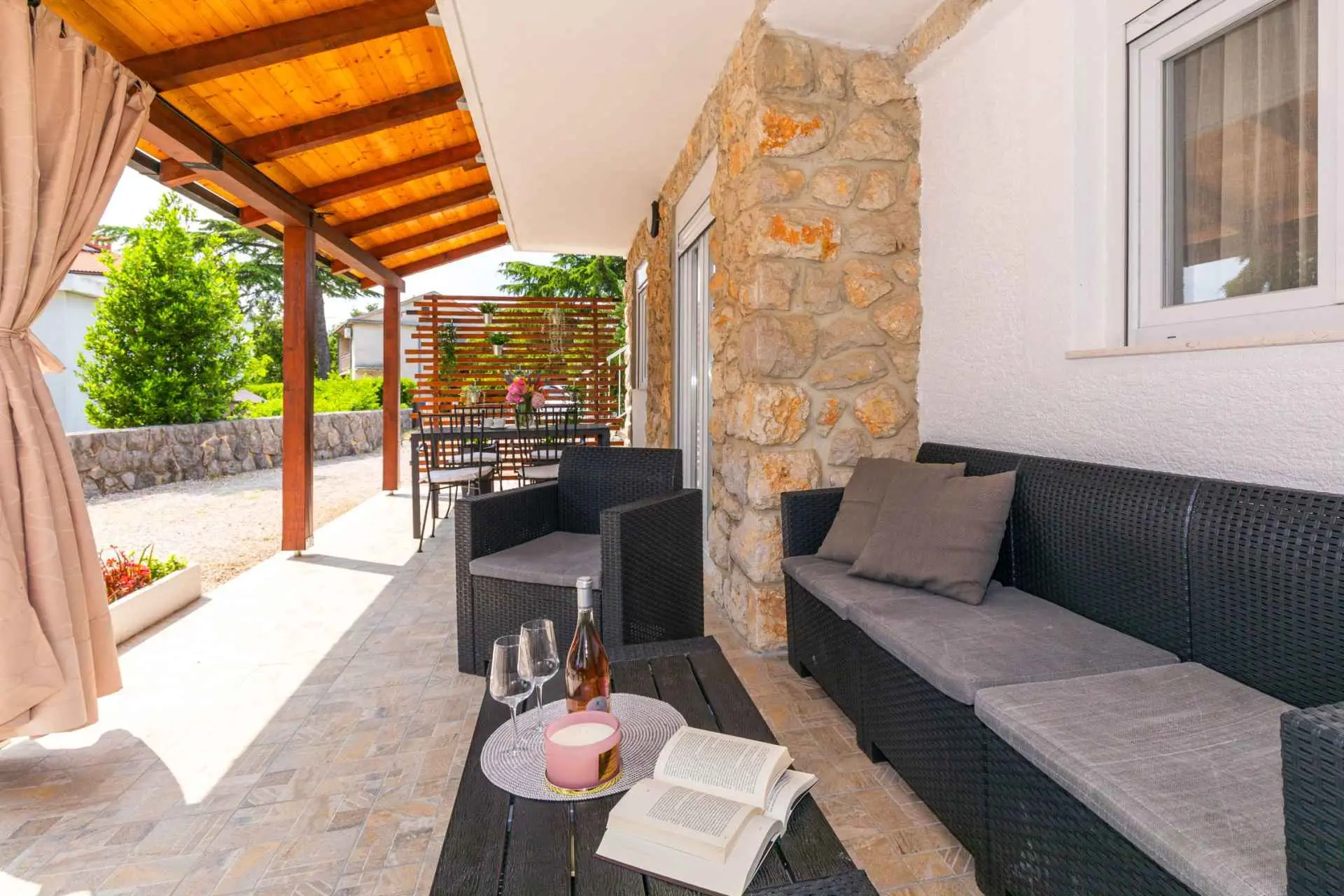 Prostoren apartma v Crikvenici. Nahaja se v pritličju, ima 3 spalnice in velik vrt, idealen za družinska srečanja.