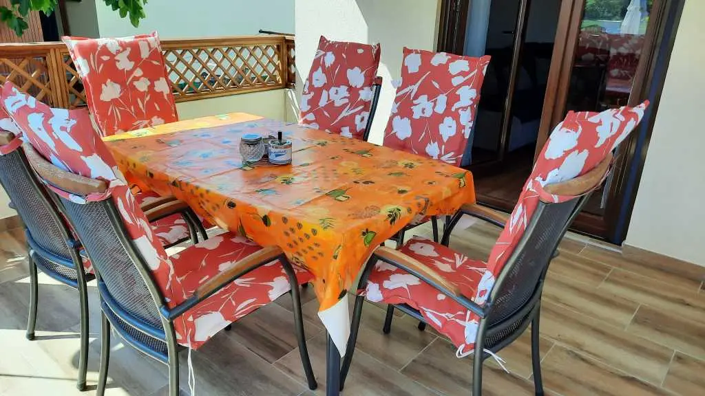 Apartmán je čistý, veľký a výborne vybavený. Dve spálne s manželskými posteľami plus v jednej ešte ďalšia posteľ, rozkladací gauč v obývacej miestnosti. Dobre vybavená kuchyňa aj s umývačkou riadu, v kúpeľni sprchový kút aj vaňa a automatická pračka. Veľká pekná terasa so sedením. Hneď pri apartmáne je veľký pekný nový bazén o ktorý sa majitelia denne starajú. Miesto na parkovanie priamo vo dvore. A hlavne veľmi milá a srdečná majiteľka Nataša, ktorá sa Vám snaží aj s manželom vo všetkom vyhovieť. Na uvítanie nám pripravila 4 druhy chutných koláčov, domáce vínko a studenú vodu na pitie. K dispozícii bola káva aj čaj. Počas pobytu nám dva krát priniesla domáci chlieb a šišky, tiež domáce paradajky. Boli sme tam už druhý krát a opäť maximálne spokojní. Môžem vrelo odporučiť.