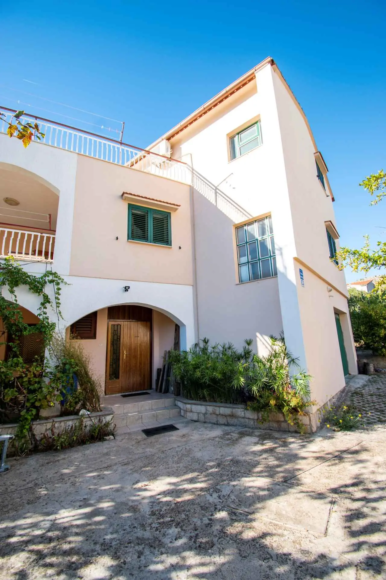 Hiša Tamaris Grebaštica, Šibenik, najboljša za družine z otroki, neposredno ob morju. Plaža je prodnata, zaščitena in idealna za otroke. Hiša ima 2 udobno opremljena apartmaja (za 4 osebe in 4 + 2 osebi). Oba apartmaja imata svoj vhod. En apartma je dvosobni (MIDI - za 4 osebe), drugi ima velik dnevni prostor z dvema dodatnima ležiščema (BIGI). Oba apartmaja imata čudovito teraso s sedežno garnituro. Obe terasi nudita pogled na morje. S terase lahko brezskrbno opazujete svoje otroke med kopanjem. Na voljo je tudi manjši otroški "park" z gugalnico, drsališčem in rolojem. Obe aplikaciji sta klimatizirani. TV SAT v obeh apartmajih. WI FI vključen v storitev. Parkirišče pred hišo, možnost uporabe žara. Nudimo tudi privez za čoln in brezplačno vožnjo z našim čolnom po zalivu. Lahko pa greste z nami na ribolov. Grebaštica ima vse potrebno za prijetno bivanje. Tiho je, ni gneče, ni prometa......pravi dopust. V bližini so Primošten, Solaris in Šibenik. Gostitelji prijazni. Dobrodošli!