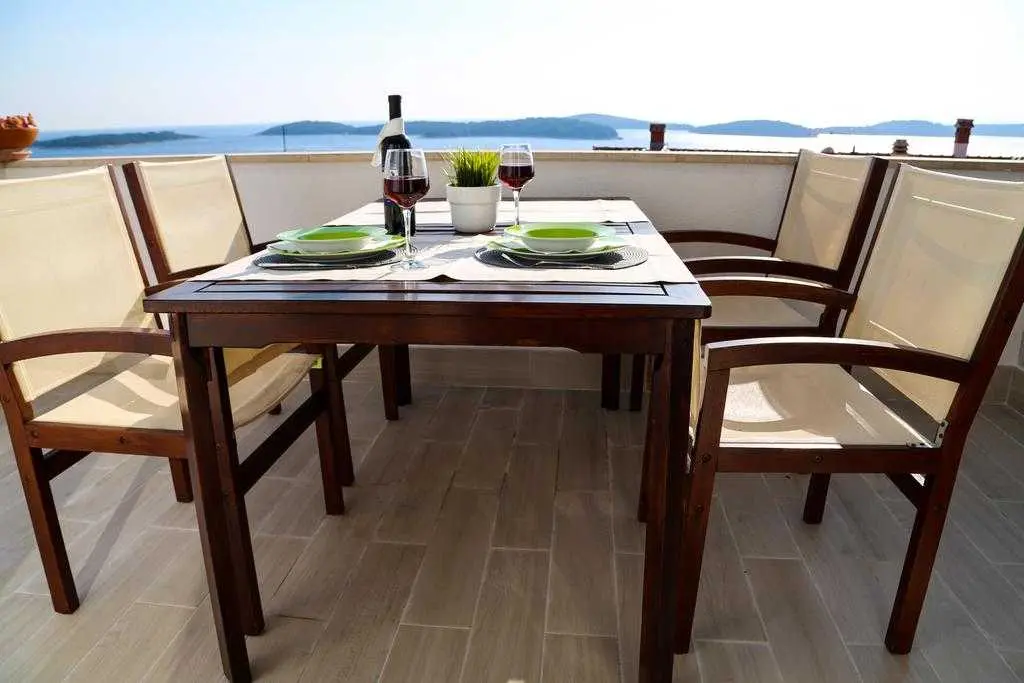Naša hiša se nahaja na eni od najlepših lokacij v mestu Hvar, jugozahodno od centra mesta, v bližini zaliva Podstine (Modra laguna). Od središča mesta smo oddaljeni približno 1 km. Do prelepe morske promenade je le 15-20 minut enostavnega sprehoda ali 5 minut z avtomobilom. Imamo 6 apartmajev visoke kategorije in poleg namestitve nudimo tudi zajtrk za naše goste. Skoraj vsi naši apartmaji imajo terase ali balkone s prekrasnim pogledom na morje in Pakleni otoki.