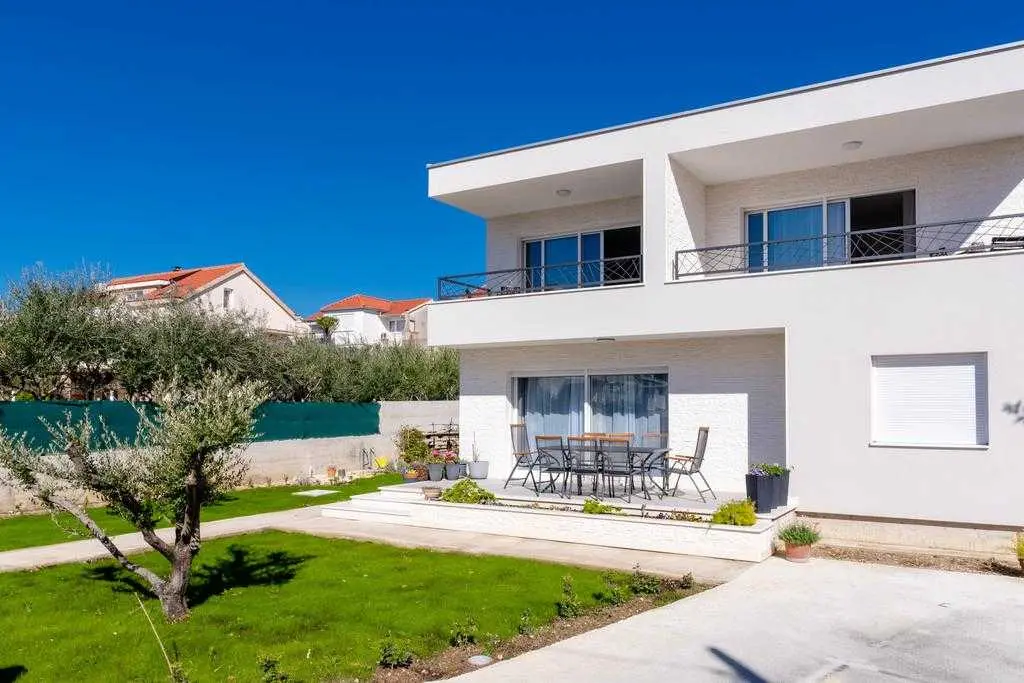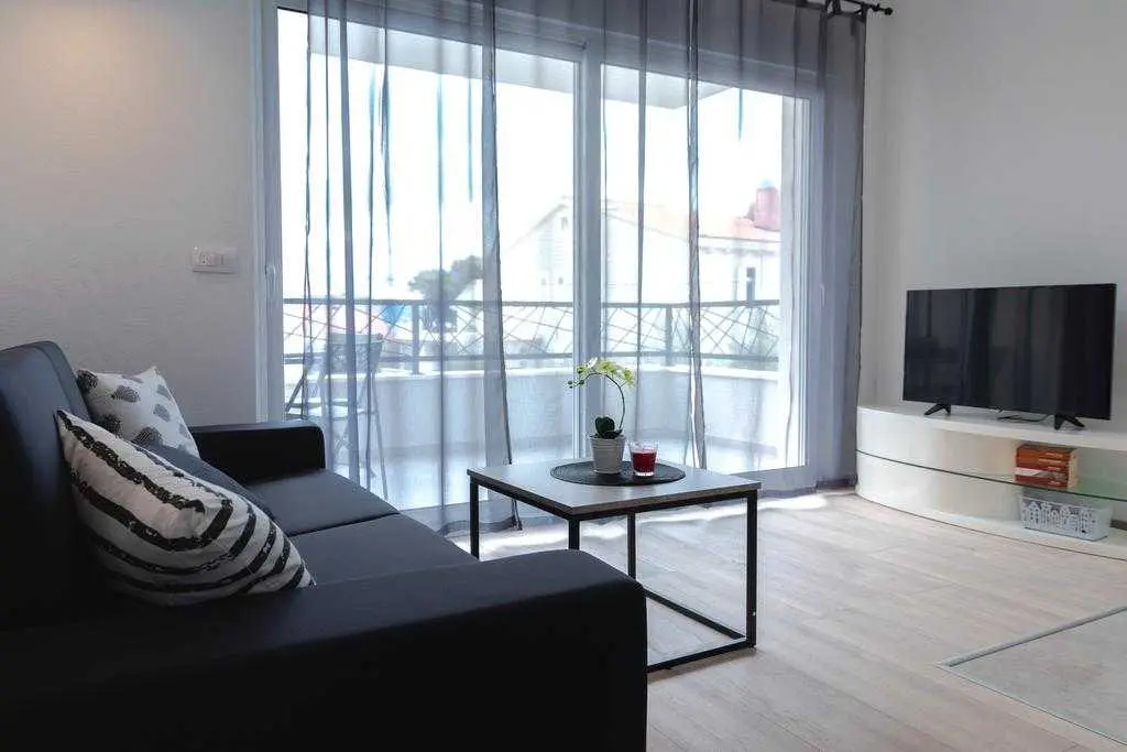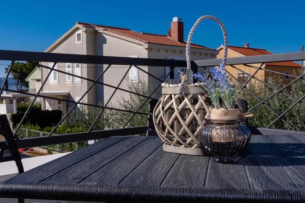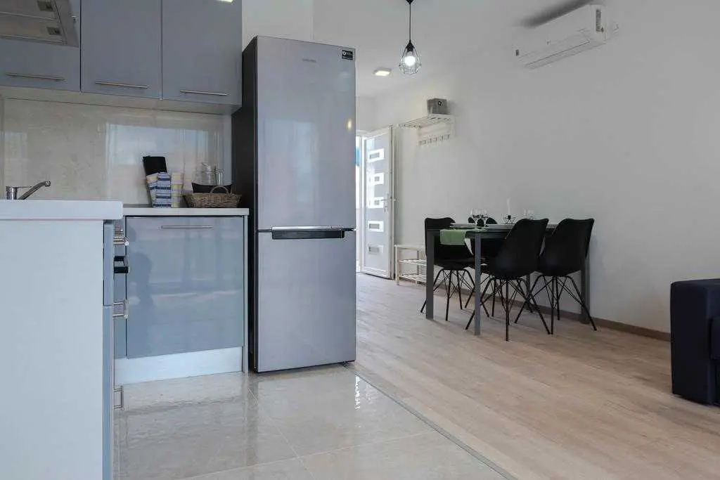 Sodobno udoben apartma z balkonom v zasebni hiši le 100m od čudovite plaže. Ima brezplačno parkirišče na dvorišču hiše, skupni kamin, brezplačen brezžični internet in je klimatiziran. Nahaja se v prvem nadstropju nove moderne hiše.