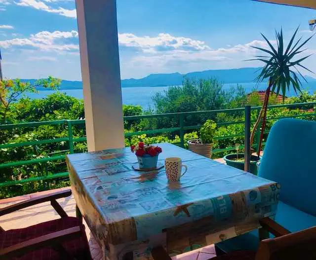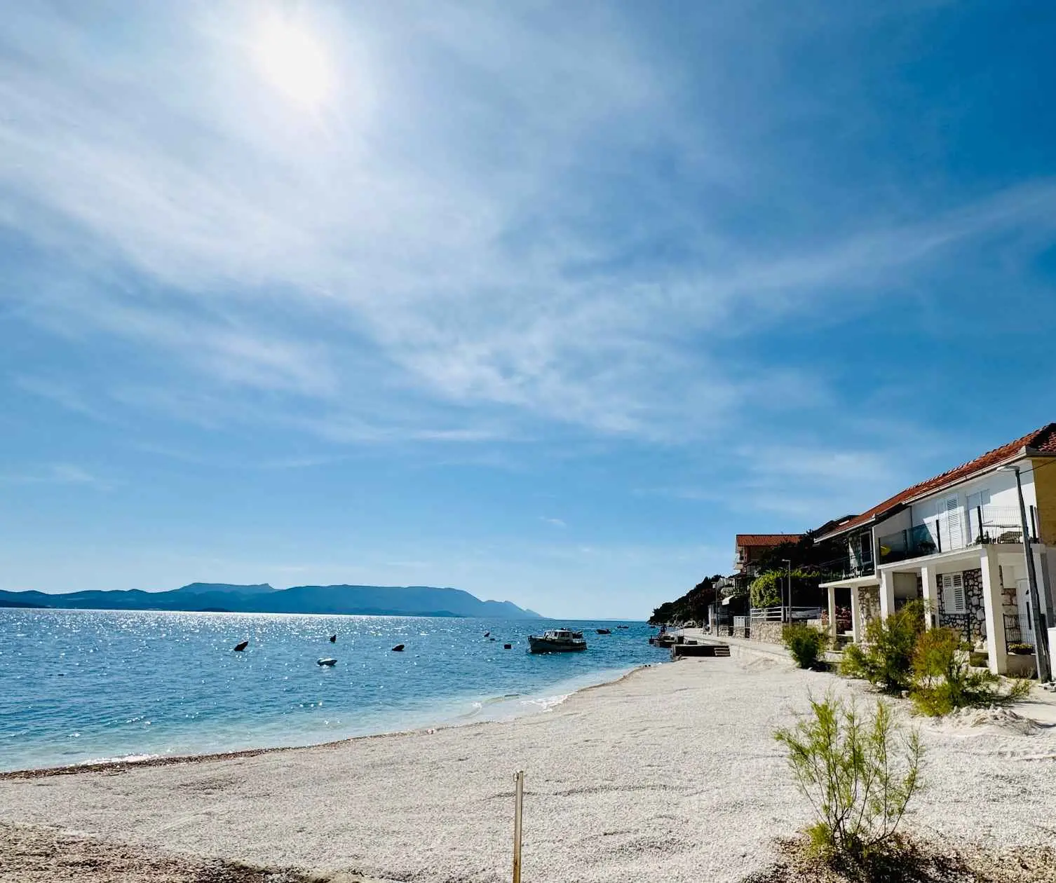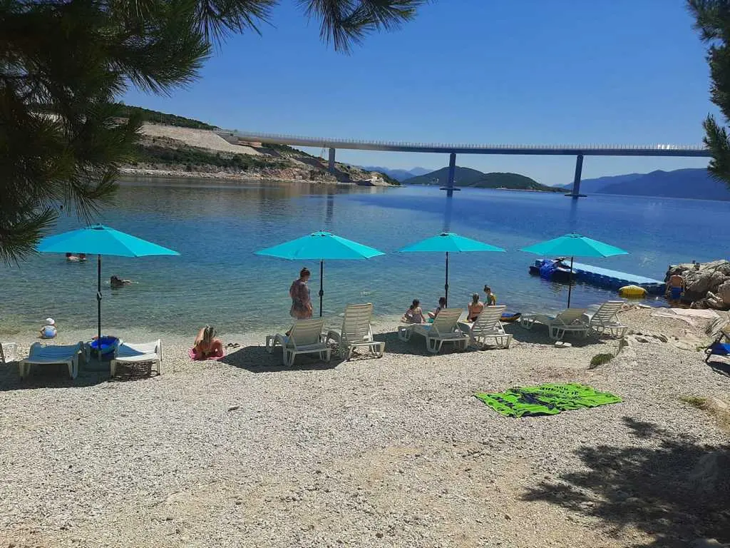Hiša 15 m od morja, terasa s pogledom na morje in Malostonski zaliv, garaža in parkirna mesta, zunanji žar, prodnate plaže 1 min hoje od hiše, trgovine in restavracije, otroško igrišče 50 m od hiše. Pelješki most za polotok Pelješac 500 m od hiše. Apartmaji imajo: 1 spalnico, drugo sobo s kavčem, kompletno kuhinjo z jedilnico, kopalnico s tušem - topla voda / pralni stroj, sušilnik za lase. Apartmaji so klimatizirani, internet WIFI, posteljnina in brisače /ne za na plažo/. Za rezervacijo apartmaja je potrebno vplačilo 20% akontacije na TRR. Za rezervacije 14 dni priznamo 5% popust, za rezervacije 21 dni pa 10% popust. Pijača dobrodošlice. Dobrodošli!
