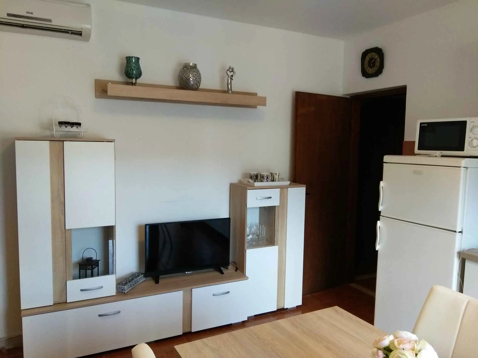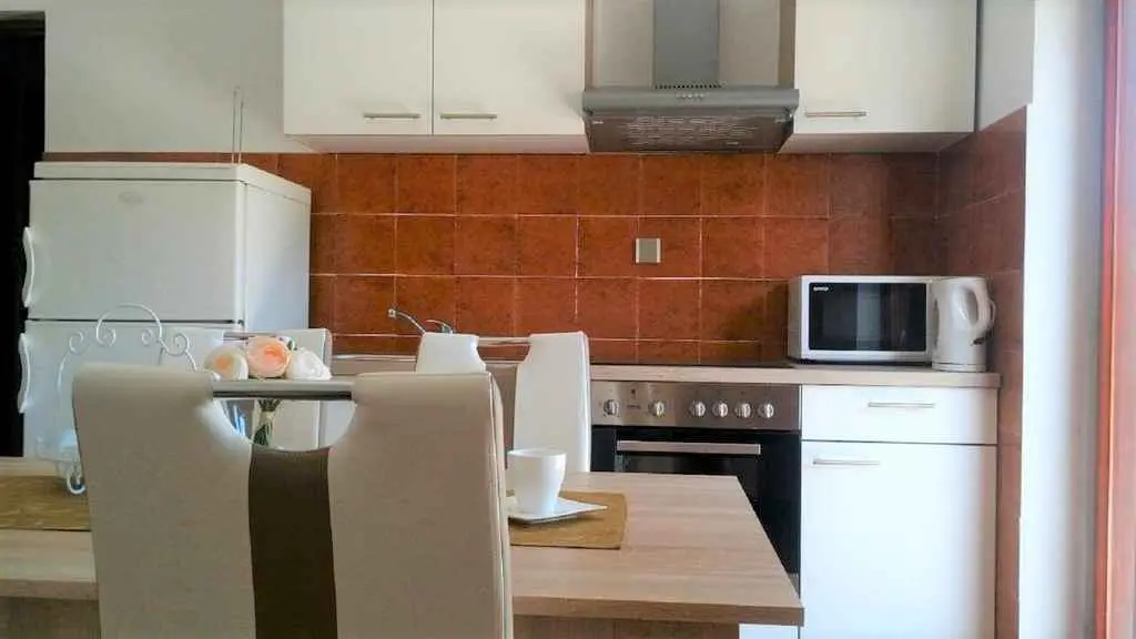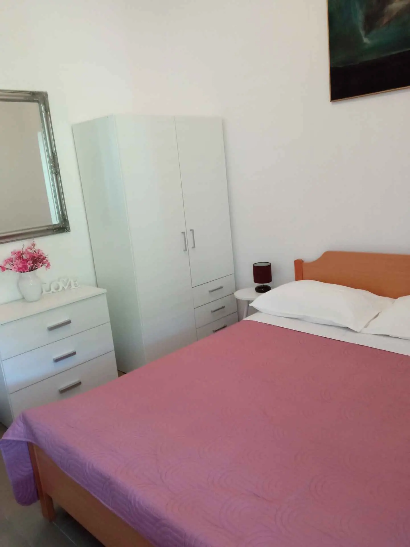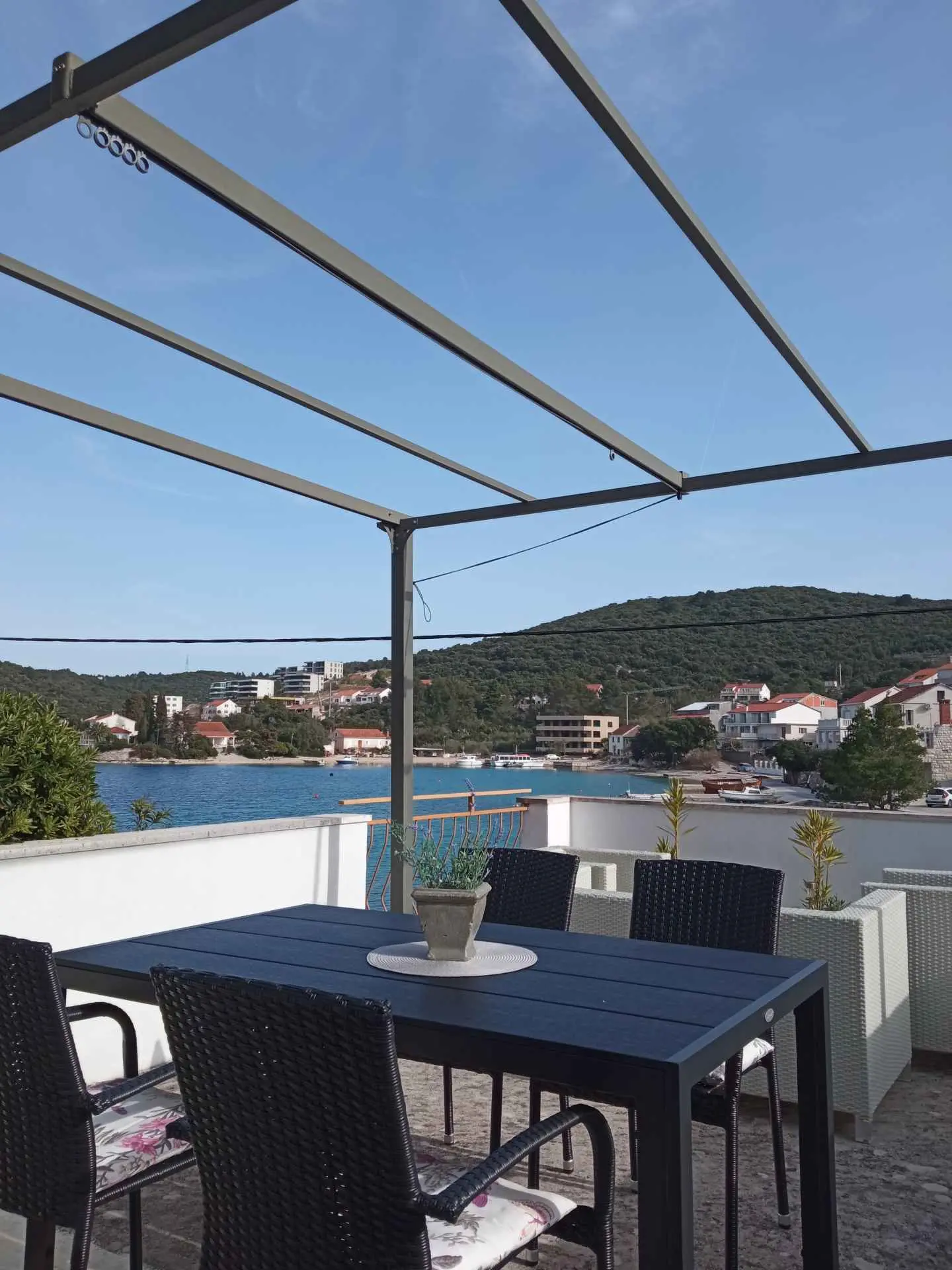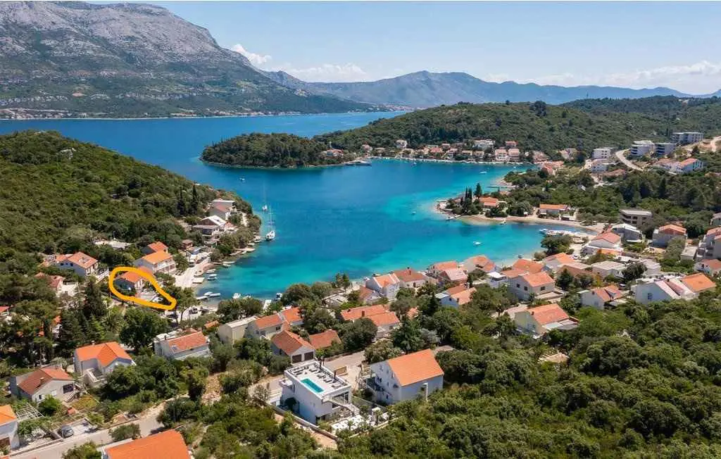 Apartmaji (2 + 1 in 4) se nahajajo v čudovitem zalivu Žrnovska Banja 3.5 km oddaljen od mesta Korčula in le 5 metrov od morja. Imajo parkirišče in privez. Peščena plaža v bližini apartmaja. Apartma (2 + 1) ima eno spalnico za 2 osebi s pomožnim ležiščem za tretje osebe (45 m2 in 20 m2 terasa), ima stropni ventilator. Apartma (4) ima dve spalnici za 4 osebe (75 m2 in terasa 20 m2), opremljenih s klimatsko napravo. Vsaka terasa ima pogled na morje. V bližini so restavracije in trgovine.