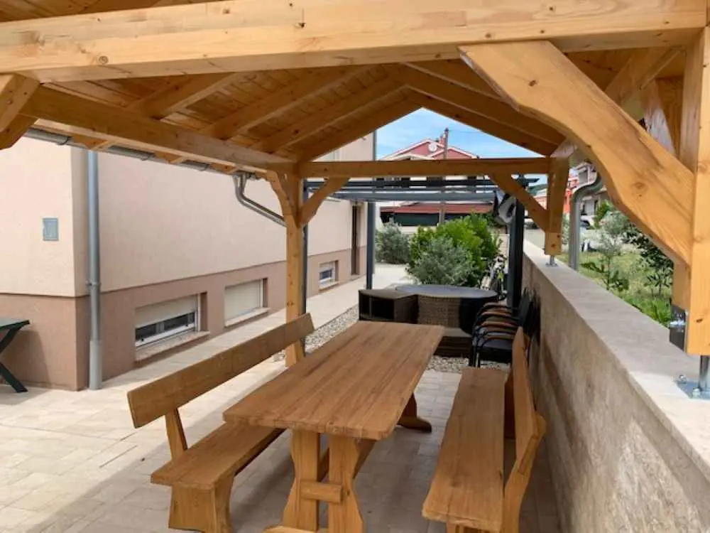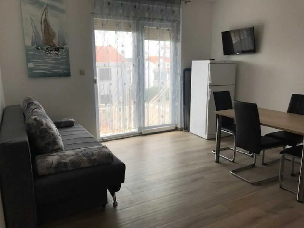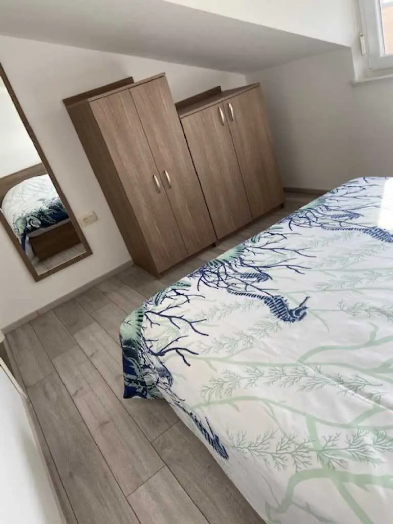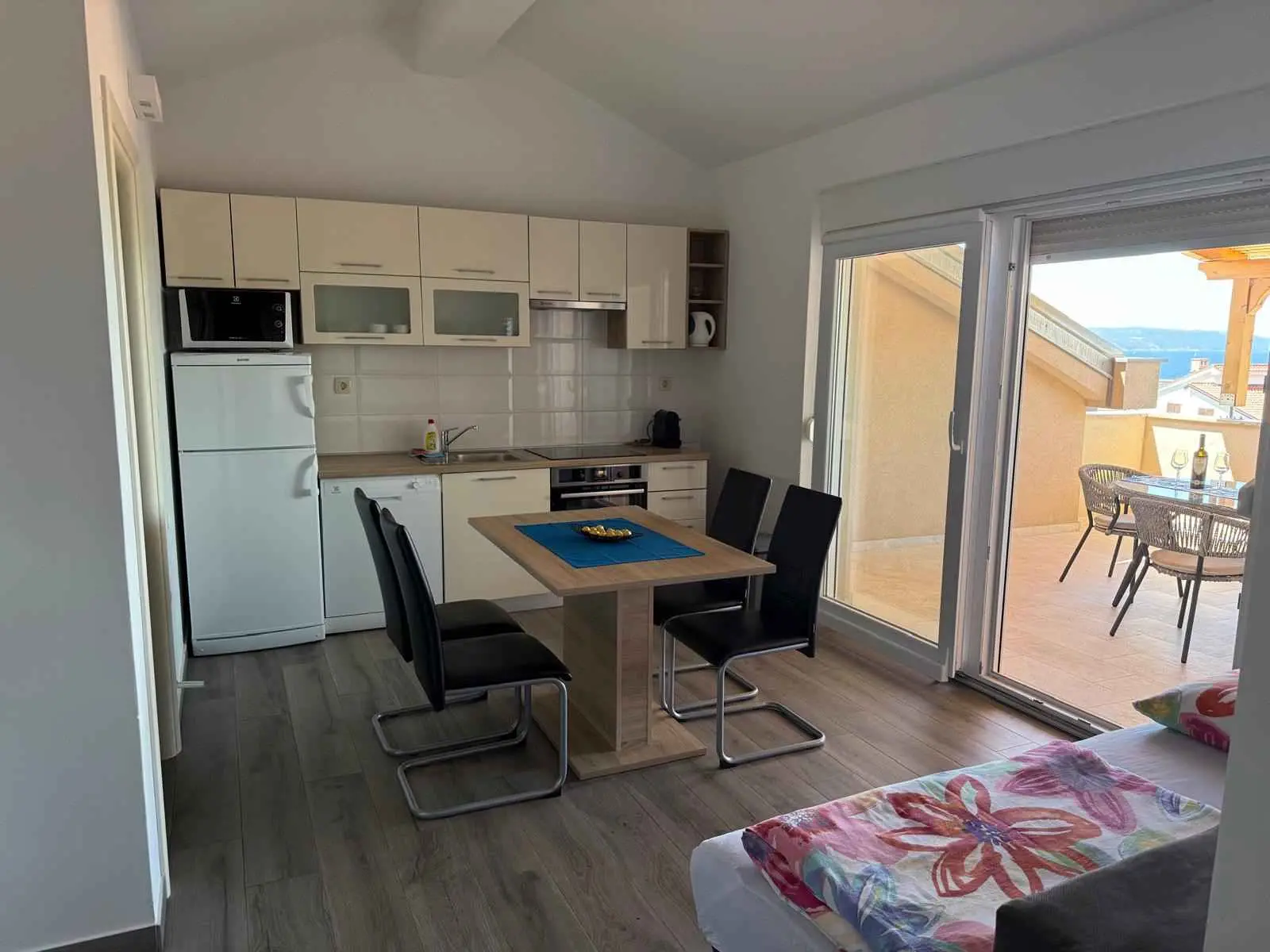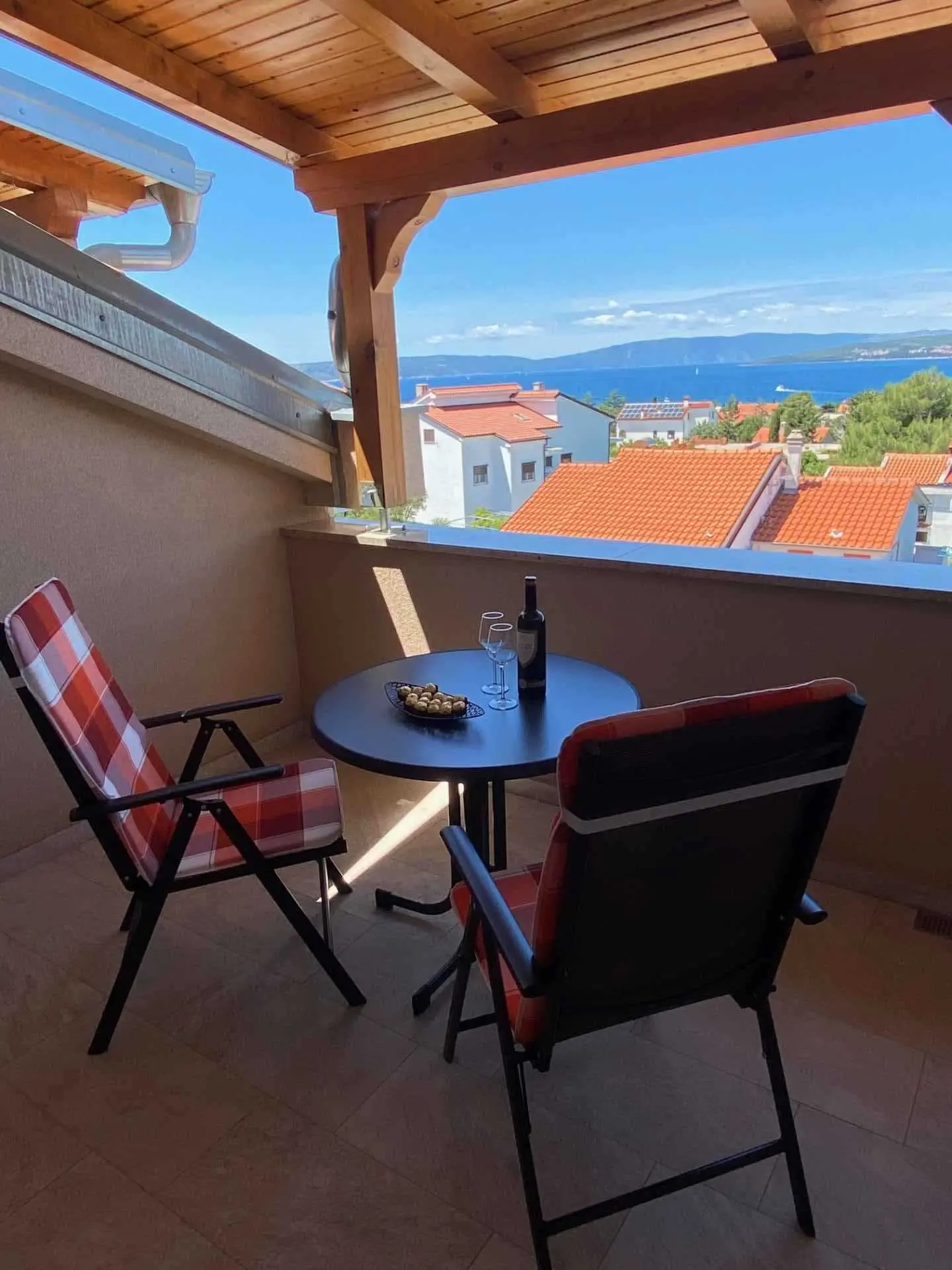 Najem apartmaja v Puntu - otok Krk. Samostojna nova hiša, ima 4 apartmaje. 2 velika za 4 2 osebi. Ena v mansardi s pogledom na morje in eno veliko pritličje. 2 majhna apartmaja za 2 1 osebi, eden v mansardi s pogledom na morje in eden v pritličju. Veliki apartmaji imajo dve spalnici, kopalnico s prho in kuhinjo z jedilnico in veliko teraso. Majhni apartmaji imajo eno spalnico, kopalnico s tušem, kuhinjo z jedilnico in teraso. Apartmaji so opremljeni s klimatsko napravo, satelitsko televizijo, pomivalnim strojem, pralnim strojem (v skupni rabi), hladilnikom z zamrzovalnikom, pečico, kuhalno ploščo, mikrovalovno pečico pečica ... Pred hišo je žar na lesu. Lastno parkirišče. Internet.