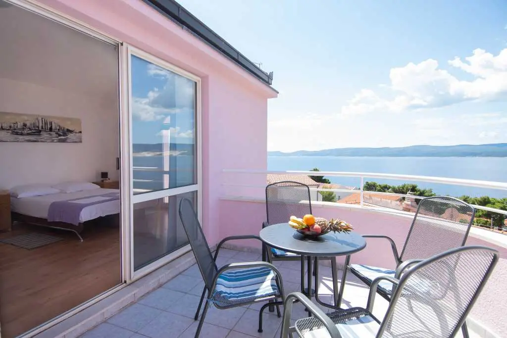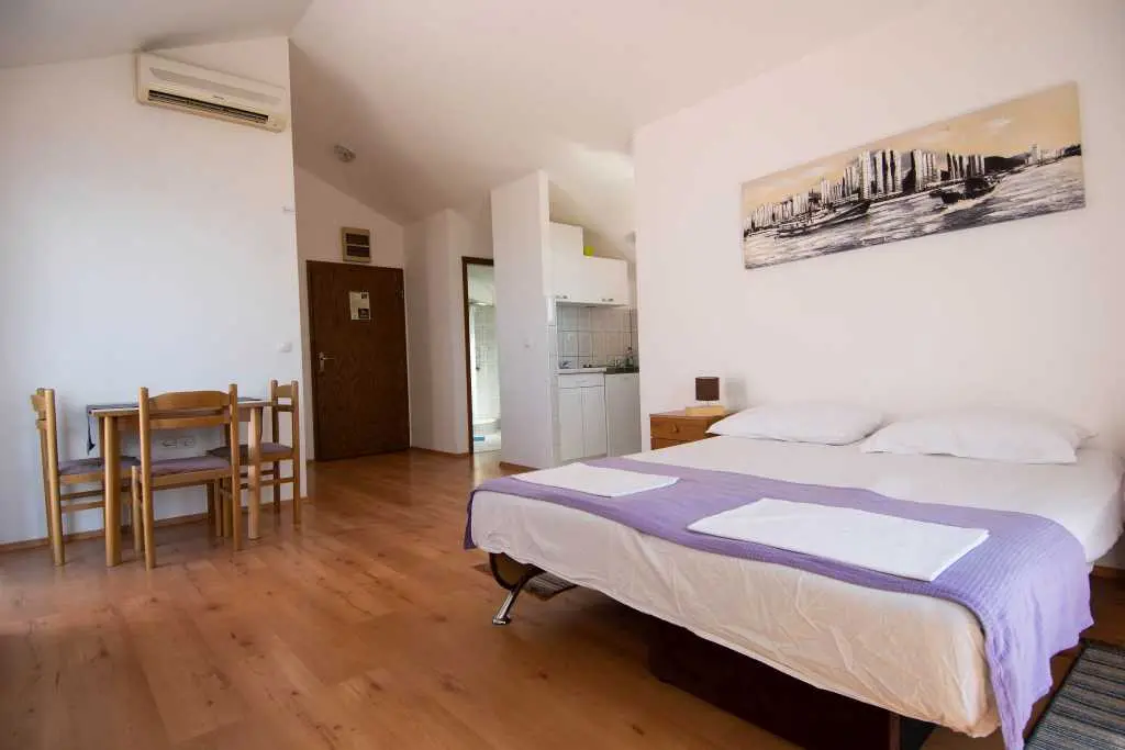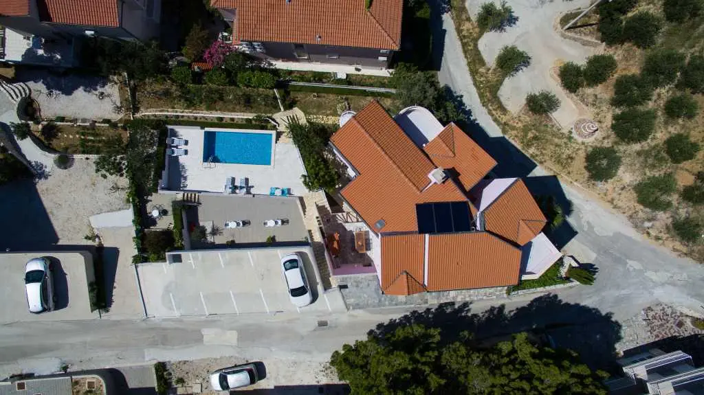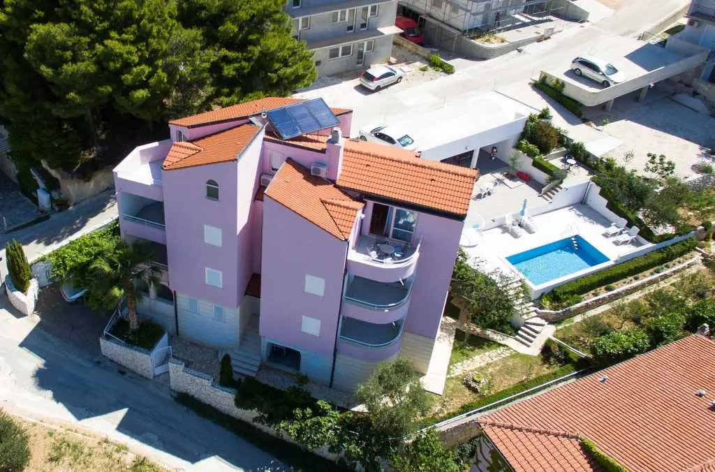 Atraktivni apartmaji z bazenom in pogledom na morje v centru Lokve Rogoznice. Apartmaji so le 180 m oddaljeni od morja in plaž in so obdani s sredozemskimi borovci. Tip apartmaja: 4 osebe ali 2 osebi. Vsak apartma ima TV, klimo, mikrovalovno pečico, Wi-Fi, balkon s pogledom na morje.