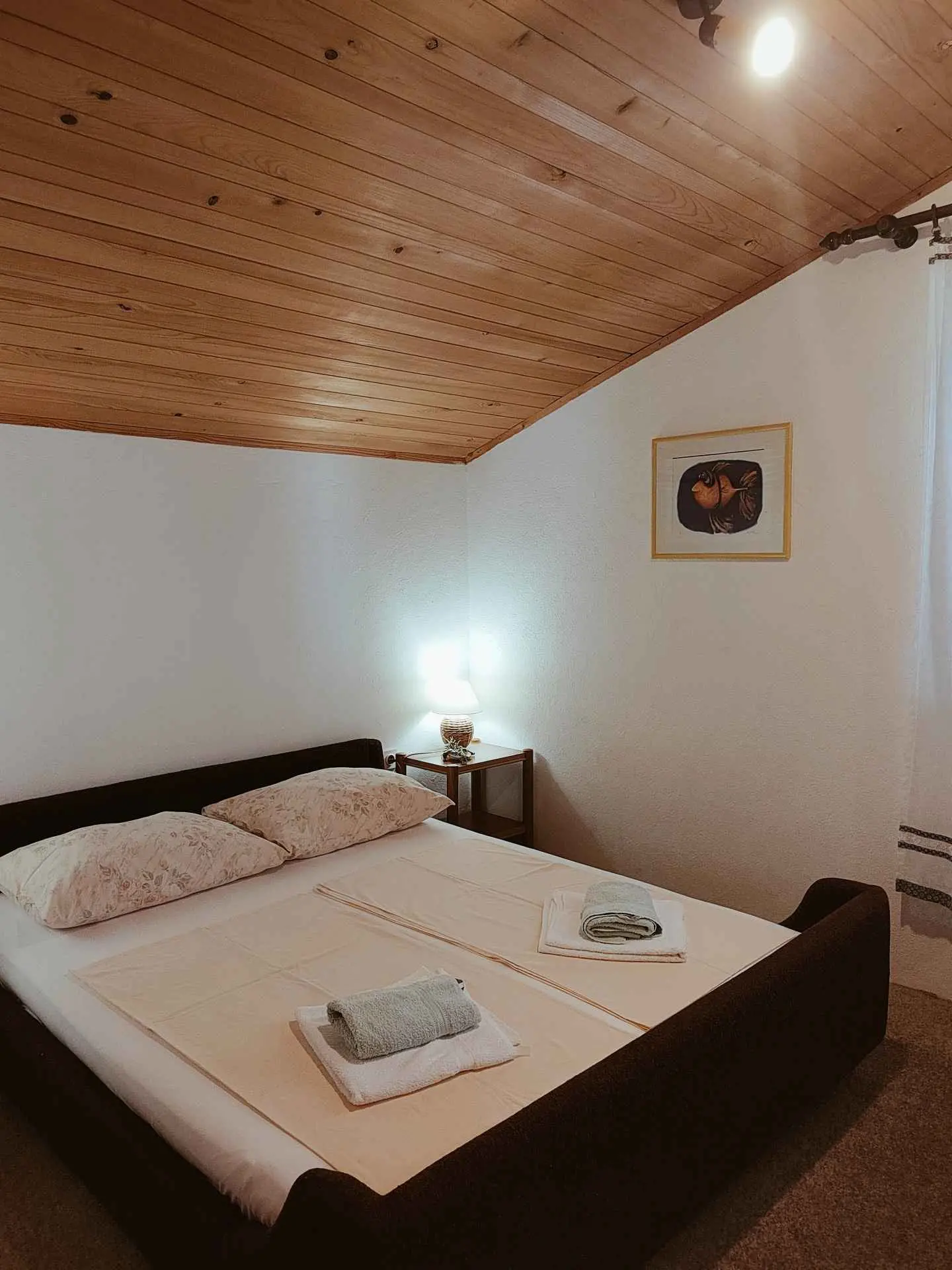 Naš apartma se nahaja v družinski hiši v 1. nadstropju, v mestu Mandre na otoku Pagu. Sestavljen je iz 2 spalnici, dnevna soba s TV sat, kopalnica, WC, kuhinja in mala loža s pogledom. Parkirišče je v bližini hiše, imate tudi tuš na vrtu in možnosti žara. Oddaljenost od plaže je približno 200m.