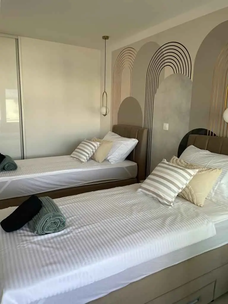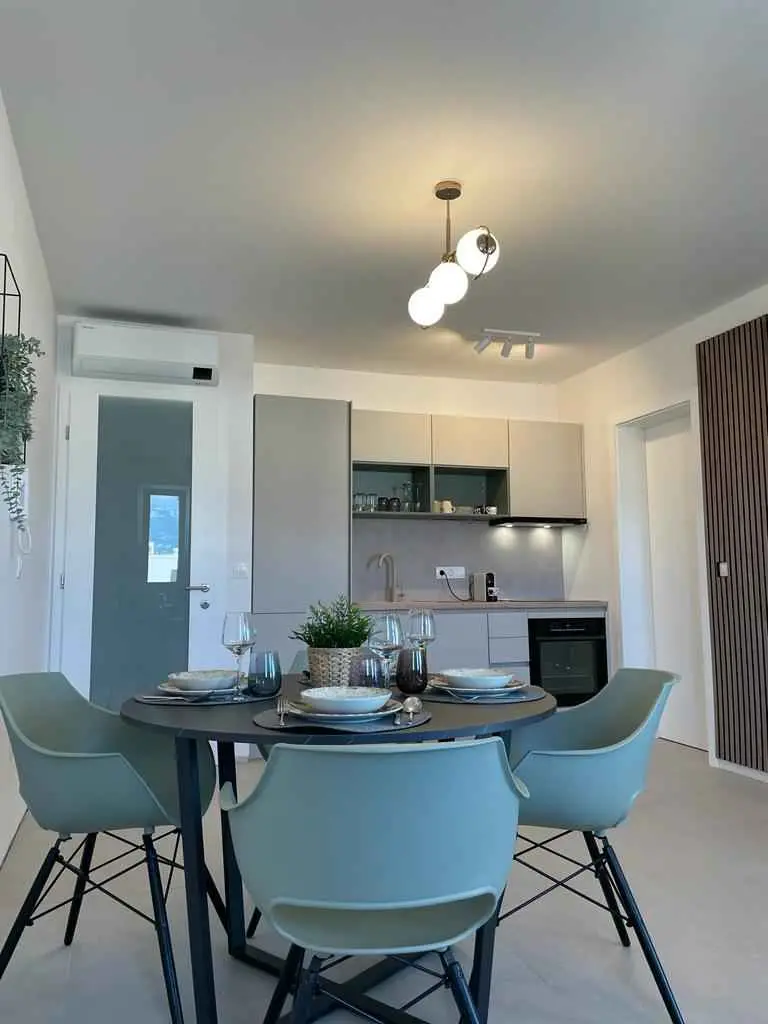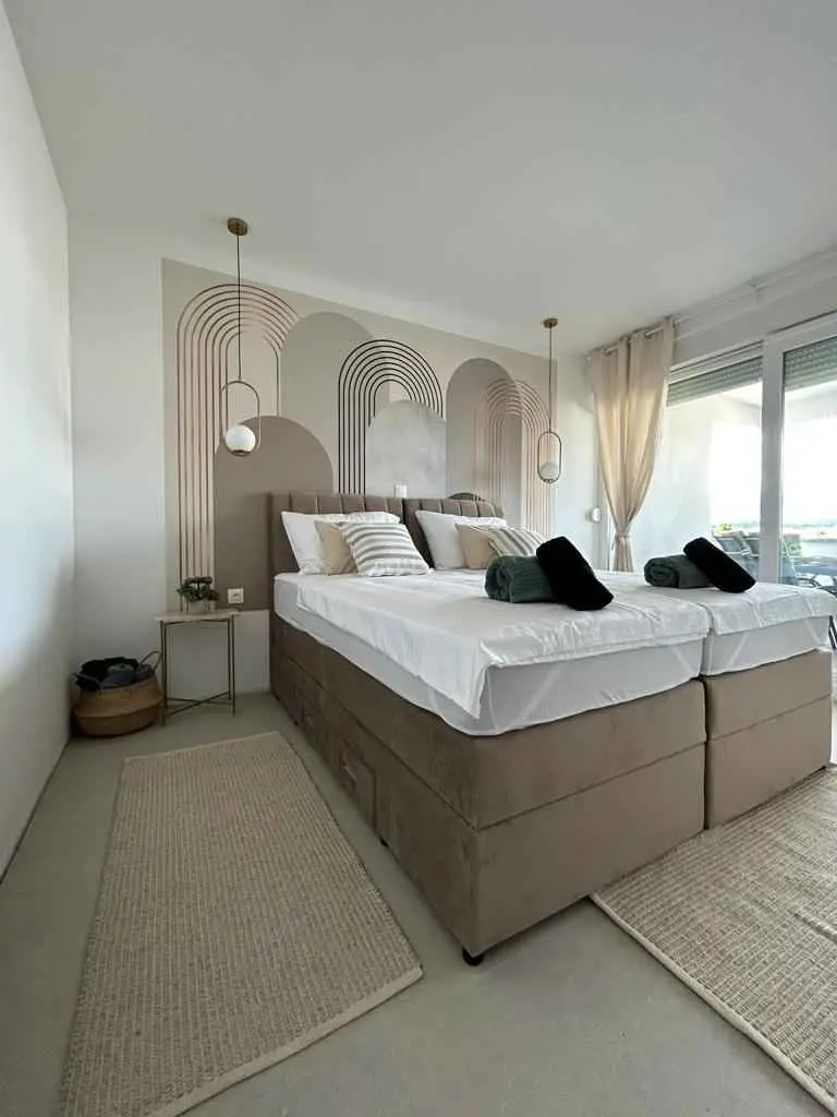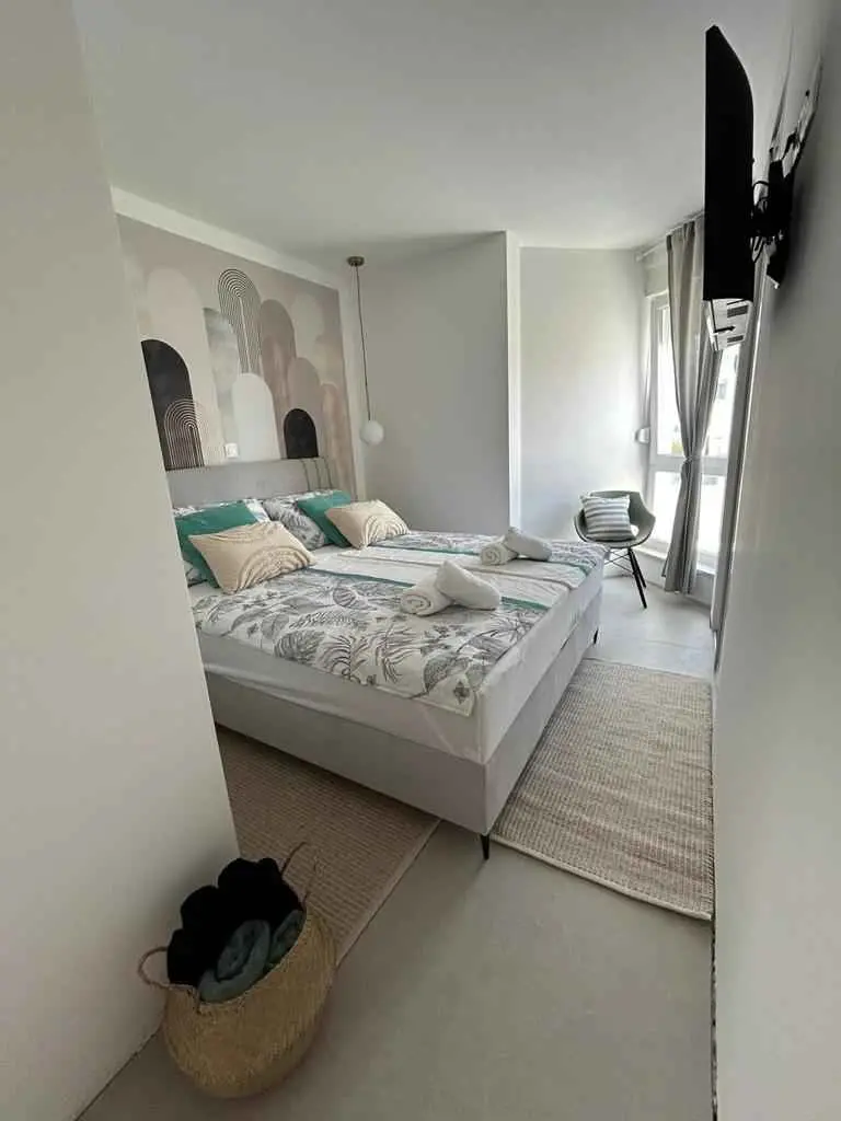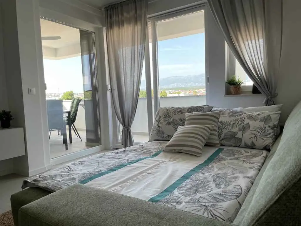 Luksuzno stanovanje Golden Mint je novozgrajeno stanovanje na vrhunski lokaciji. Nahaja se v 1. nadstropju in obsega 2 spalnici, 2 kopalnici, dnevno sobo, kuhinjo in jedilnico ter 10 m2 veliko ložo s pogledom na morje in Velebit. Kuhinja je opremljena s štedilnikom, pečico, hladilnikom in skrinjo, vključno s pomivalnim strojem. V kopalnici je pralni stroj. Sobe imajo zakonske postelje, možna pa je tudi ločena postelja za 2 osebi. V dnevni sobi je na voljo dodatno ležišče za 2 osebi. Posteljnina in brisače so vključene v ceno. V vsaki sobi in dnevni sobi je pametna TV. Wi-fi hitri internet omrežja 5G je brezplačen za uporabo. Uporaba klimatske naprave je brezplačna. Brezplačni sta tudi 2 parkirni mesti za goste.