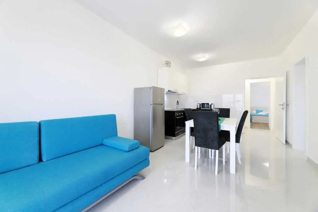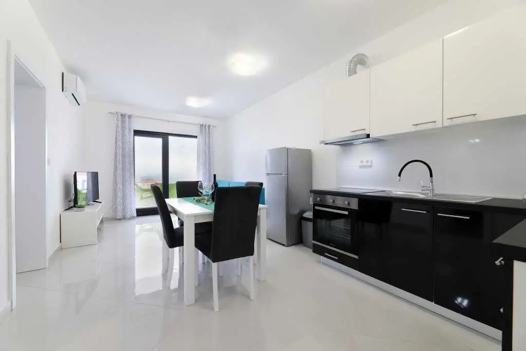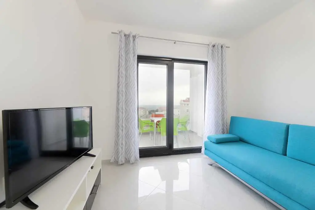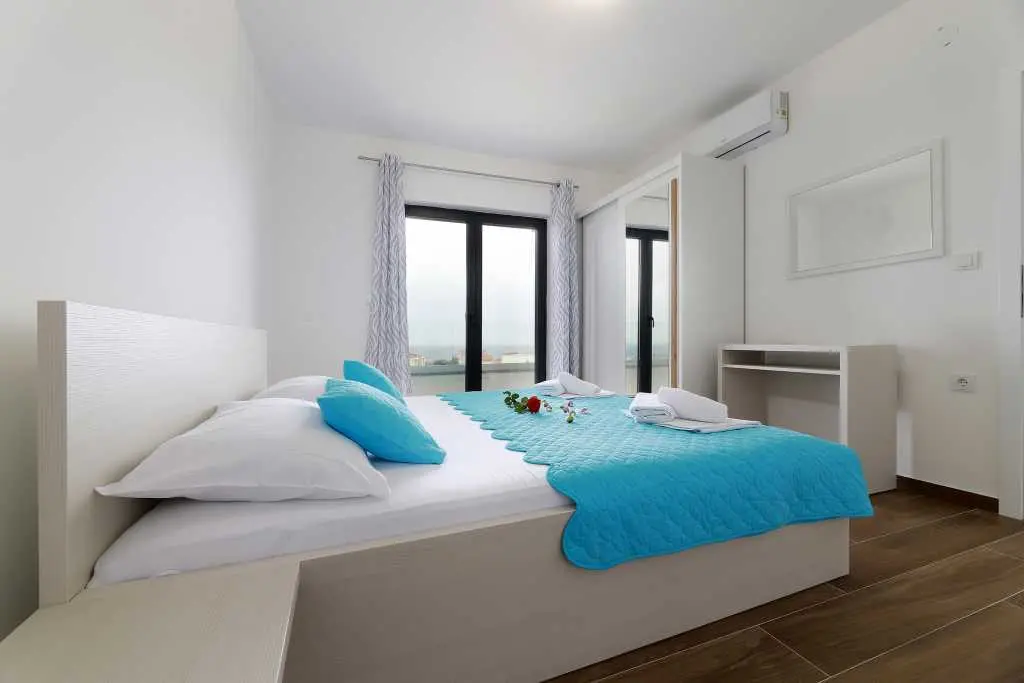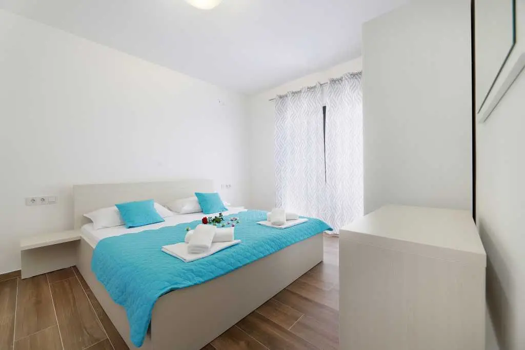 Vila je sestavljena iz 12 popolnoma novih in modernih apartmajev, 6 enosobnih apartmajev za 4-5 oseb in 6 garsonjer za 2-3 osebe. Vsaka nastanitvena enota ima klimatsko napravo, brezžični internet, popolnoma opremljeno kuhinjo ter mokre kopalnice in balkone. Studio apartma obsega en prostor z zakonsko posteljo in dodatnimi ležišči, kuhinjo, TWC, TV / SAT, wi-fi, klimatsko napravo, balkon z mizo in stoli, parkirišče. Apartma vključuje eno spalnico z zakonsko posteljo in dodatnim ležiščem, kavč v dnevna soba za dve osebi, kuhinja in jedilnica, TWC, TV / SAT, wi-fi, klima, balkon s stoli in stoli, sef, parkirišče. Ponudba: posteljnina in brisače, terasa, klima, brezplačen brezžični internet, brezplačno parkirišče. Apartma je v bližini centra Novalje in glavnega avtobusa do plaže Zrče (približno 200 m). Supermarket je oddaljen le 7-9 minut hoje. Plaža in morje sta oddaljena 10-15 minut hoje. Območje je podnevi in ponoči popolnoma varno in mirno.