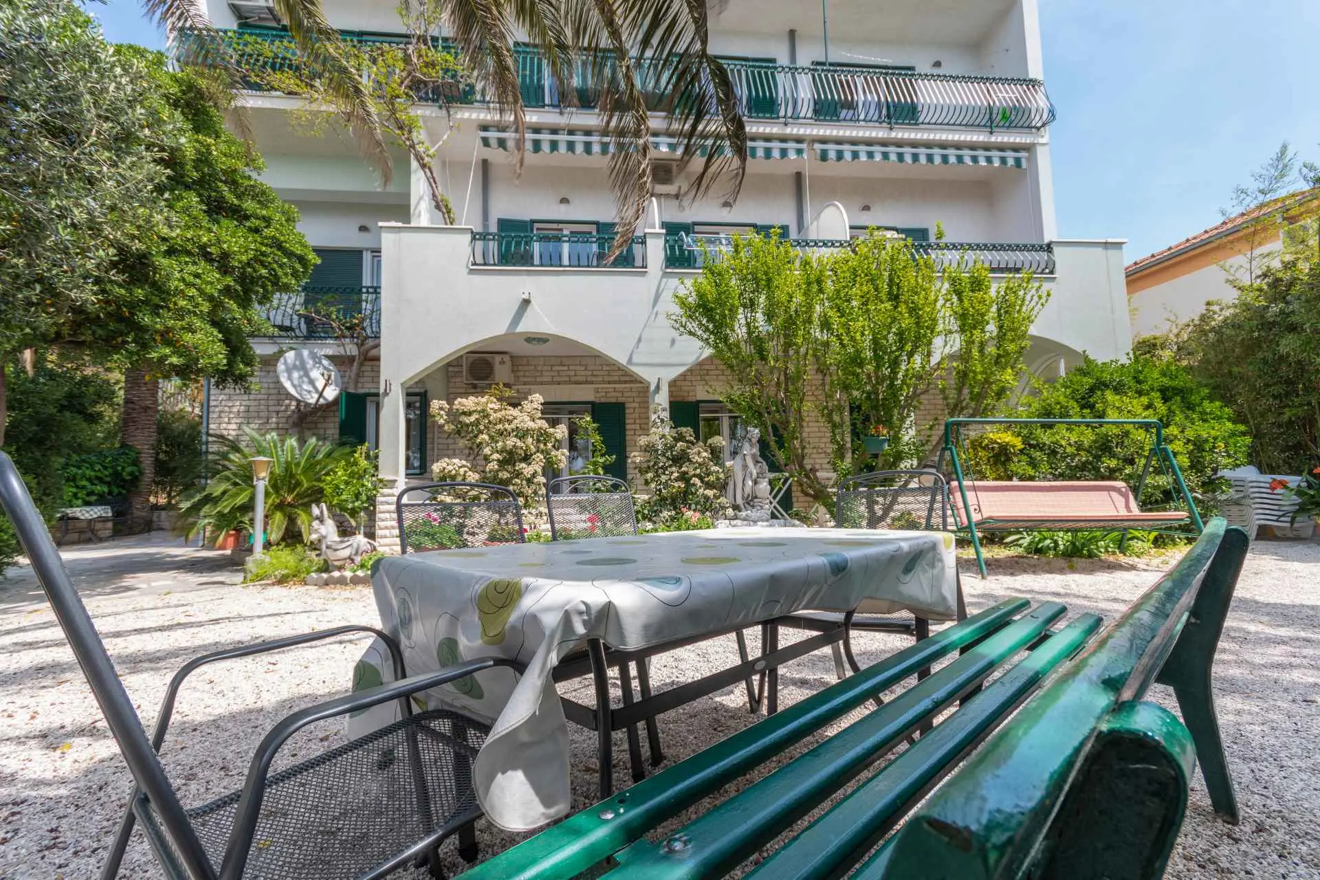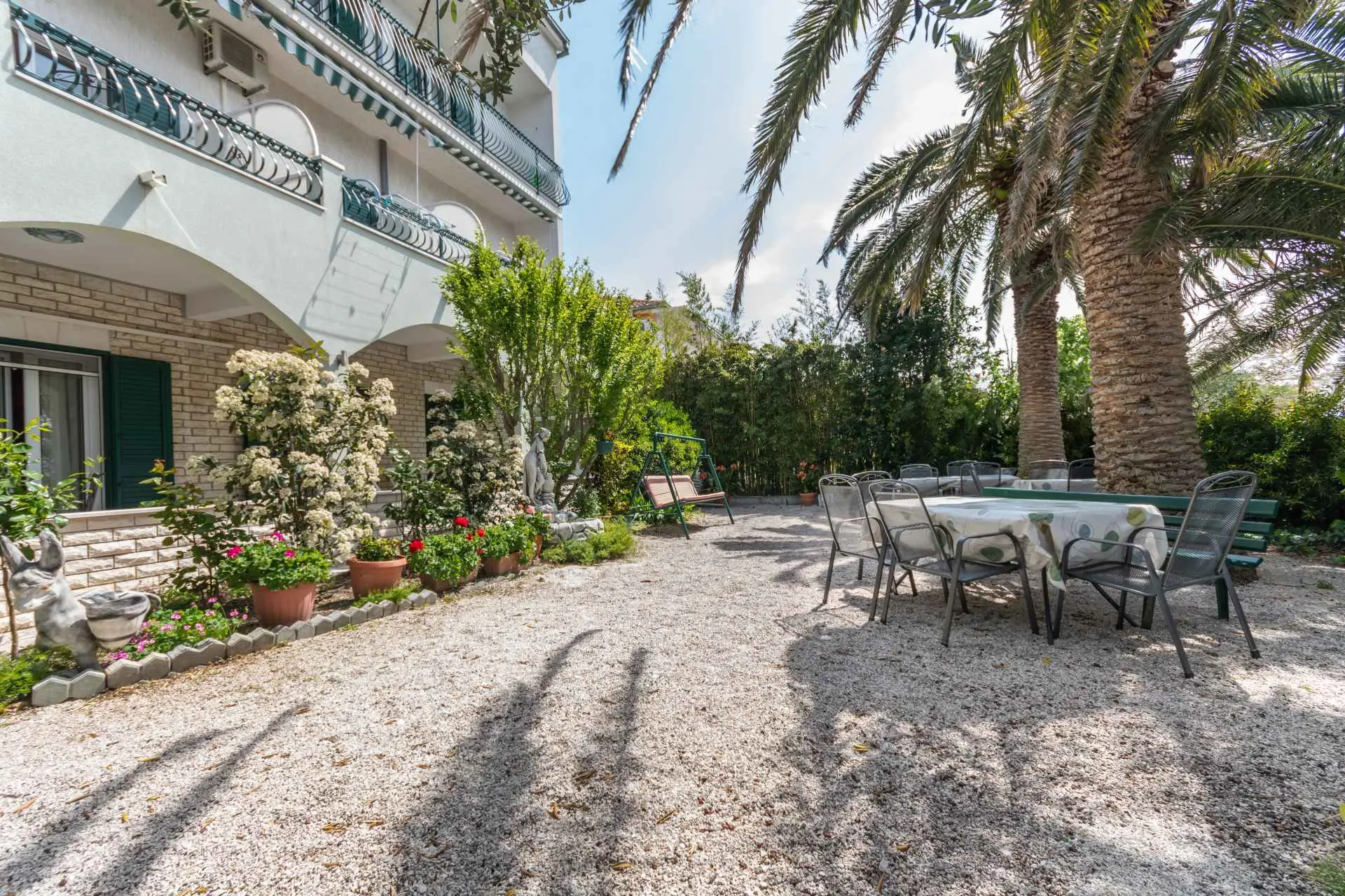 Apartmaji Palme se nahajajo v Podstrani, 10 km oddaljeni od 1700 let starega mesta Split. Nahajajo se 10 metrov od plaže. Objekt je sestavljen iz šestih enot. AP (2) - studio apartma za 2 osebi s pogledom na morje. (23 m2). AP (2 +1) apartma za 2 odrasli osebi in 1 otroka brez pogleda na morje. AP (4 +1) III-nadstropni apartma za 4 osebe + 1 otrok s pogledom na morje. AP (4 +1) in Floor West apartma za 4 osebe + 1 otrok s pogledom na morje. AP (4 +1) in Floor East apartma za 4 osebe + 1 otrok s pogledom na morje. AP (7 +1) III-nadstropni apartma za 7 oseb in 1 otroka s pogledom na morje. Cena vključuje naslednje: Parkirišče, žar, Ležalniki, Posteljnina in brisače. Pomagamo pri svetovanju in organiziranju potovanj z ali brez turističnega vodiča. Uporaba klimatske naprave je delno vključena v ceno, ostalo pa se zaračuna - 0,6 evra na uro. Apartma AP 2 + 1 - ima dnevno 6 ur brezplačno uporabo klimatske naprave. OPAZITI: - Za vsako dodatno ležišče (+1) se cena doplača 15 eur/noč. - Cene končnega čiščenja 1.AP(2)..........15 EUR 2.AP(2+1)......20 EUR 3.AP(4+1)......25 EUR 4.AP (7+1).....35 EUR