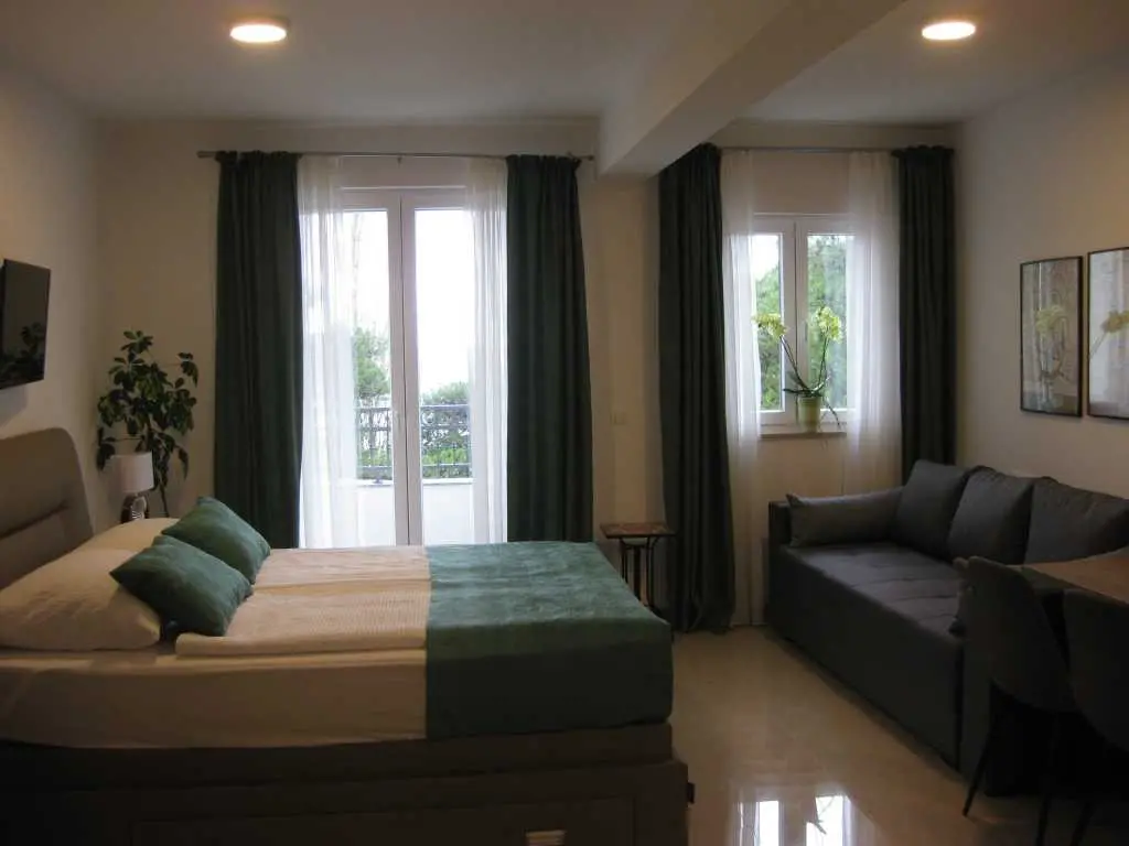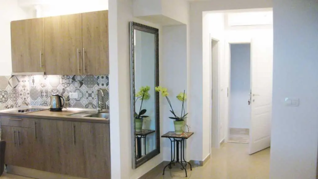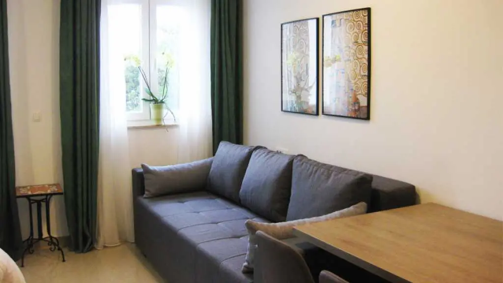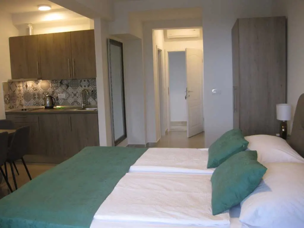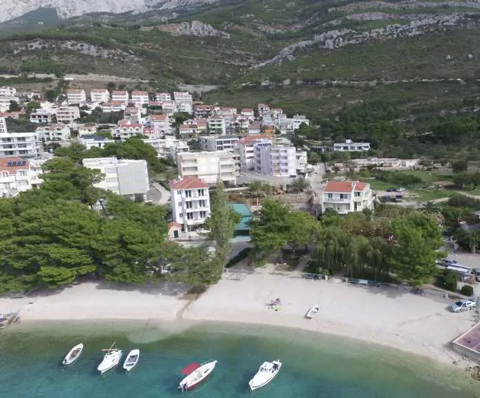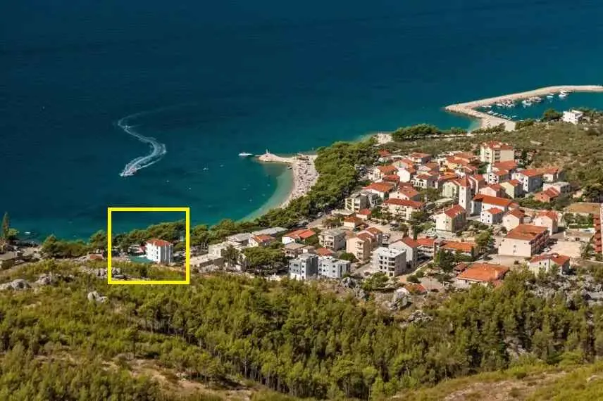 Promajna na Makarski rivieri, 60 km južno od Splita, majhen in miren kraj s skoraj 230 prebivalci, na enem najlepših predelov Dalmacije. Od mesta Makarske in avtobusne postaje je le 6 km. Splitsko letališče je oddaljeno približno 80 km. Apartma se nahaja približno 10m od morja, le nekaj korakov od 6 km dolge prodnate plaže, ki je tudi ena najdaljših plaž na Hrvaškem. Neokrnjena narava okoliške planine Biokovo ponuja številne priložnosti za šport in prosti čas. Promajna je idealen kraj za mirno sprostitev. Primerna je predvsem za družine z majhnimi otroki zaradi čudovite nežno poševne plaže. Apartma z balkonom, udobno kopalnico in fantastičnim pogledom na morje. Stanovanje je od plaže ločeno le s promenado.
