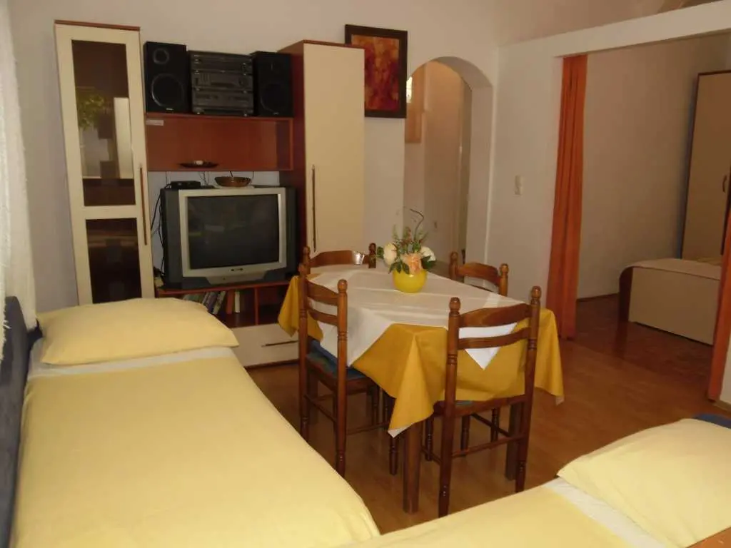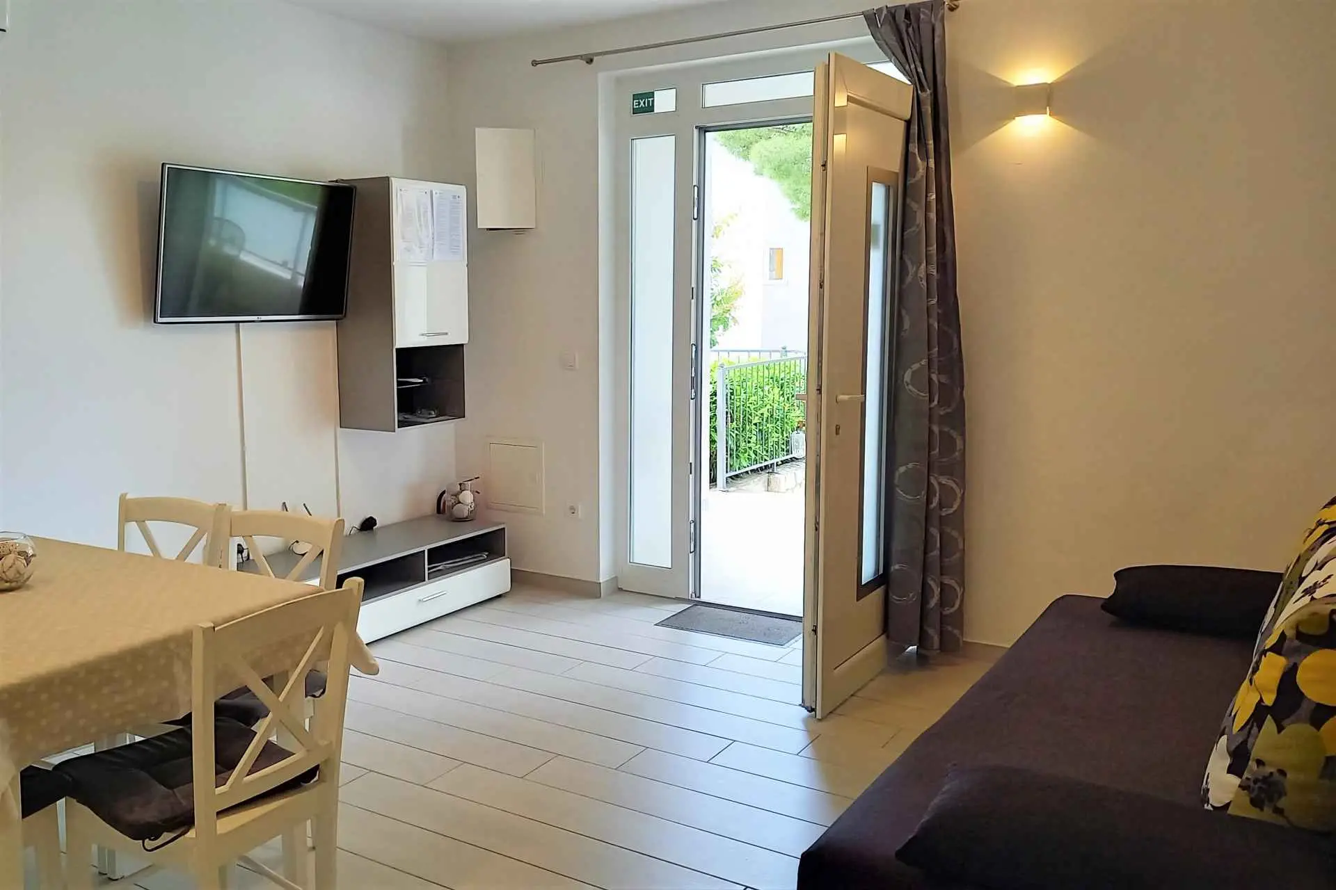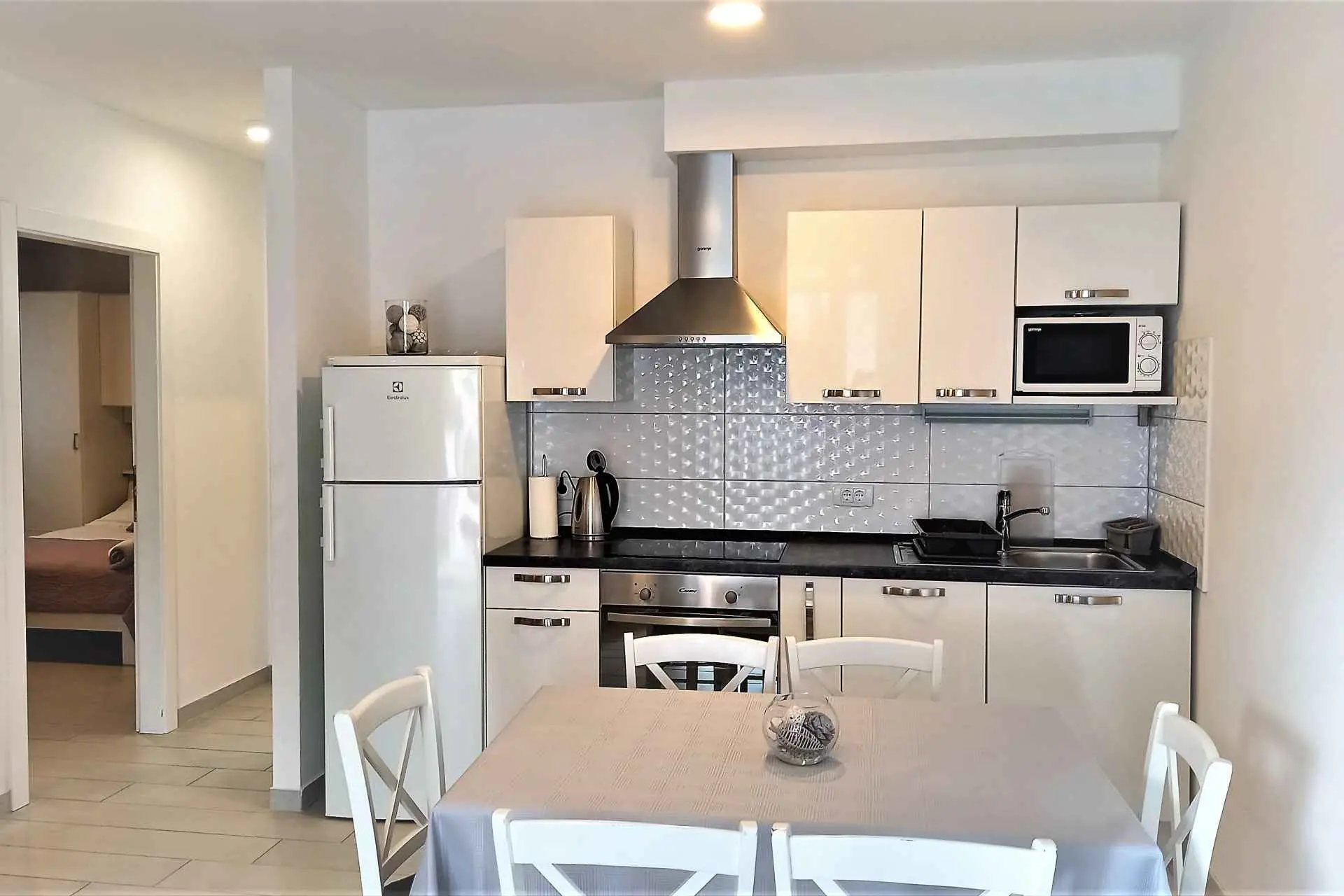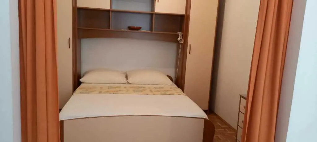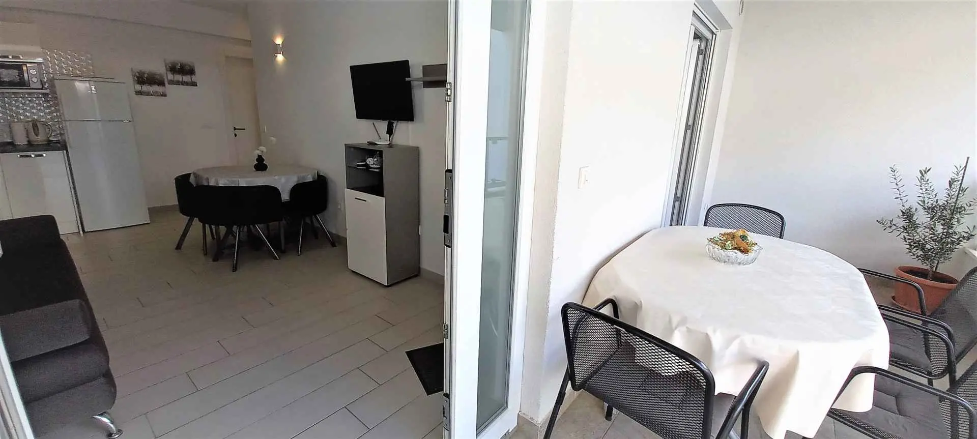 Apartmaja MIRA sestavljata 2 studio apartmaja za 4 osebe. Nahajata se v pritličju družinske hiše, približno 250 m od glavne plaže. Vsak apartma ima svoje parkirno mesto pred apartmajem. Poleg standardne opreme je v obeh apartmajih na voljo tudi pralni stroj. Apartma A4 je opremljen tudi s pomivalnim strojem. Vsak studio apartma ima 1 spalnico z zakonsko posteljo, ločeno z zaveso. V dnevni sobi sta 2 dodatni ležišči. Apartmaja se nahajata drug ob drugem, kar je idealno za dve družini, ki želita bivati skupaj.