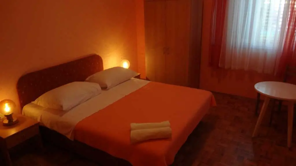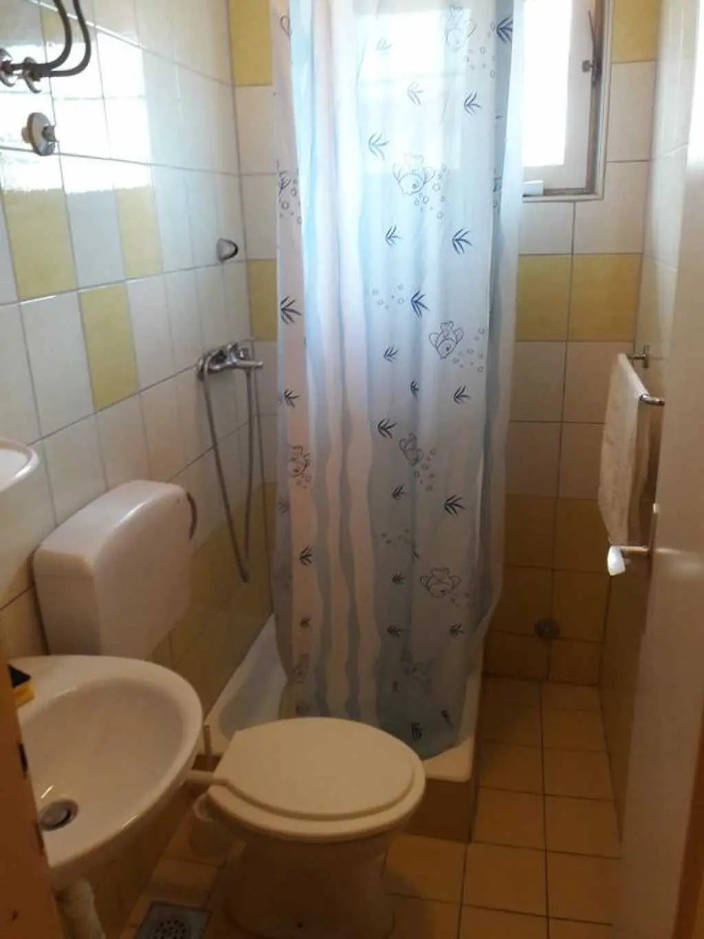 Hiša s 4 dvosobnimi apartmaji, 1 enosobnim apartmajem in 1 studio apartmajem, kapaciteta 25 oseb. Hiša je od plaže oddaljena 50 m. V pritličju je palačinkarnica. Nudimo najem električnih skuterjev.