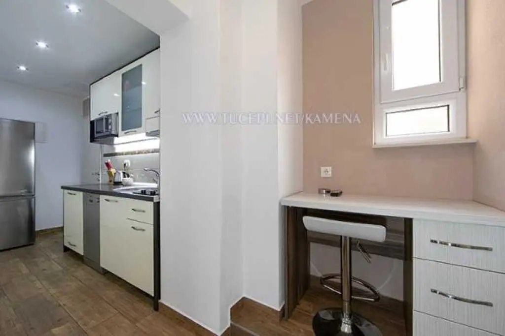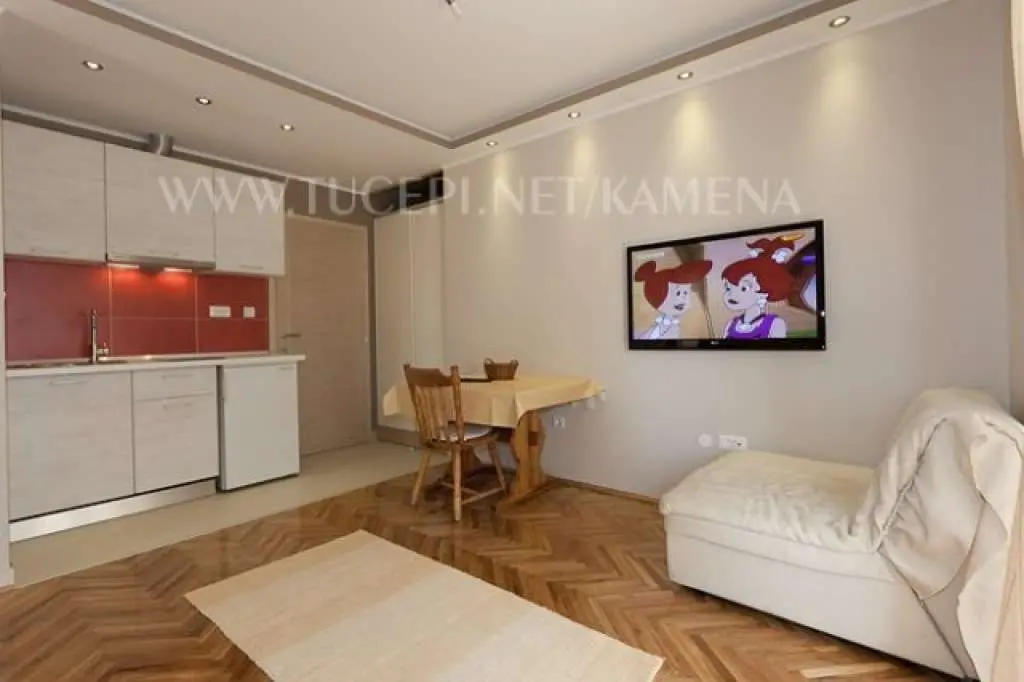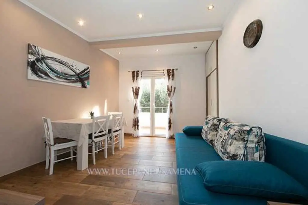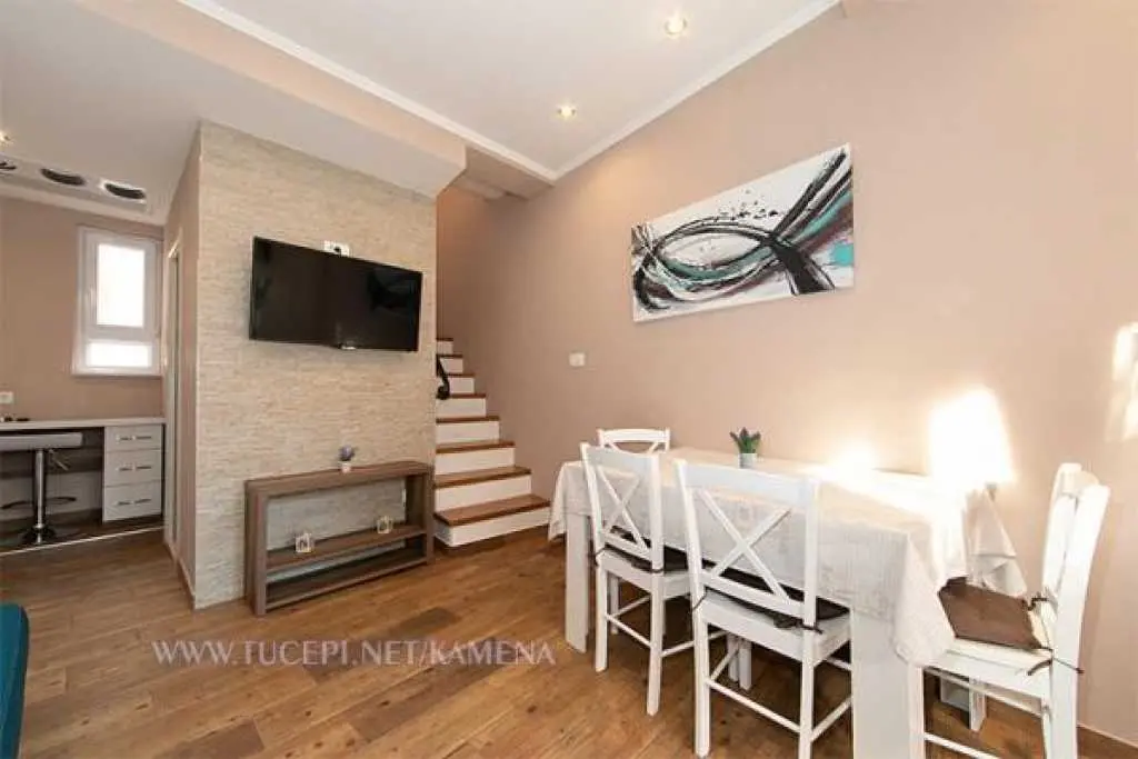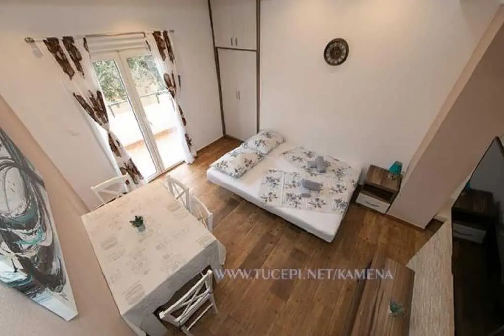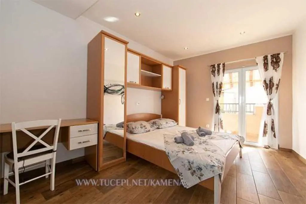 Apartmaji Kamena se nahajajo v najlepšem delu Tučepi, le 10 m od plaže. Imamo 6 apartmajev, od tega 3 garsonjere A2 + 1, 2 sobno stanovanje: A2 + 2, A3 + 2, 1 sobno stanovanje 4 + 2. Apartmaji so opremljeni s klimatsko napravo, satelitsko televizijo, Wi-Fi, kuhinjsko opremo , posteljnina, brisače, parkirišče in balkoni s pogledom na morje. - Zlasti priporočajo ponudbo Restavracija, ki se nahaja v pritličju naše stavbe, kjer strežemo lokalne dalmatinske in mednarodne specialitete (možen je zajtrk - 6 € na osebo) . Dobrodošli v apartmajih in restavraciji Kamena - Tučepi, Hrvaška. Družina Viskovic :-) !!!