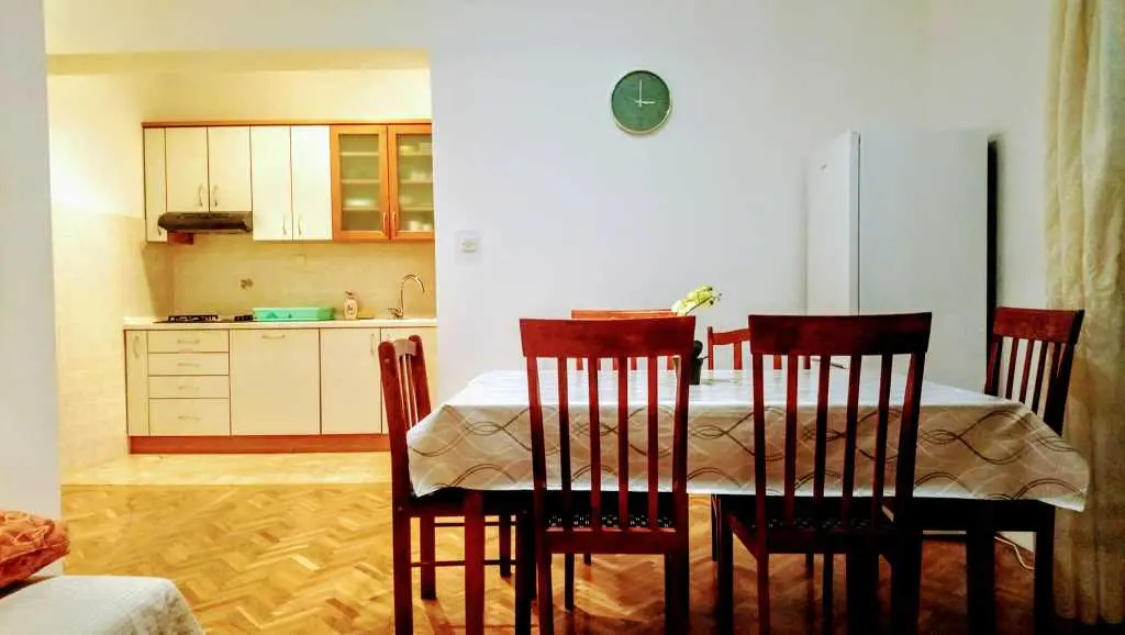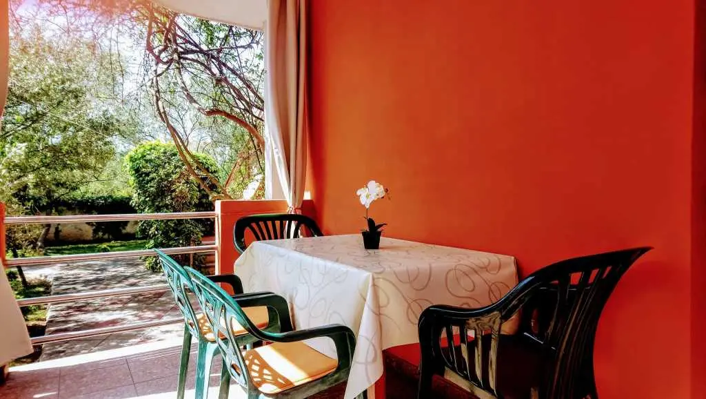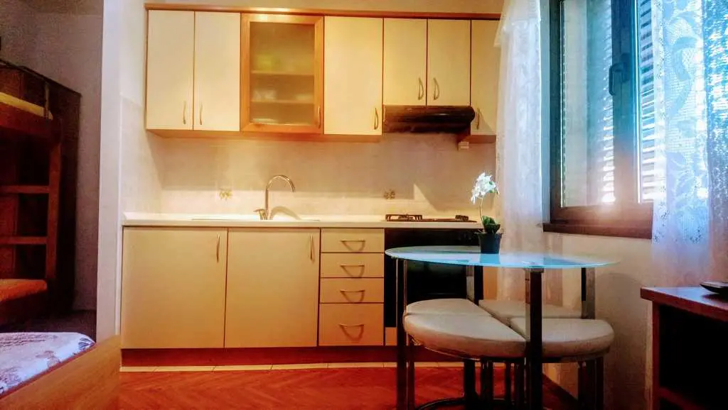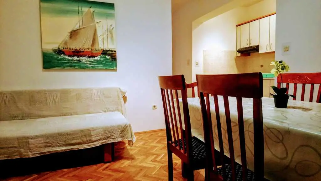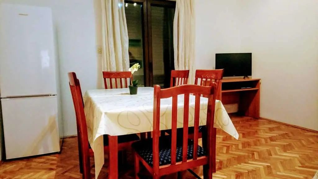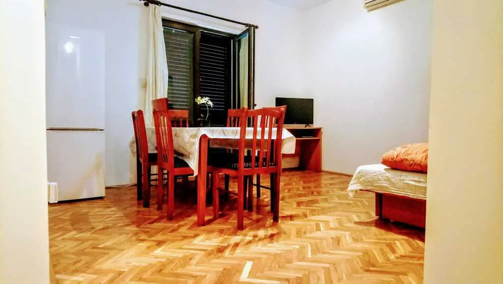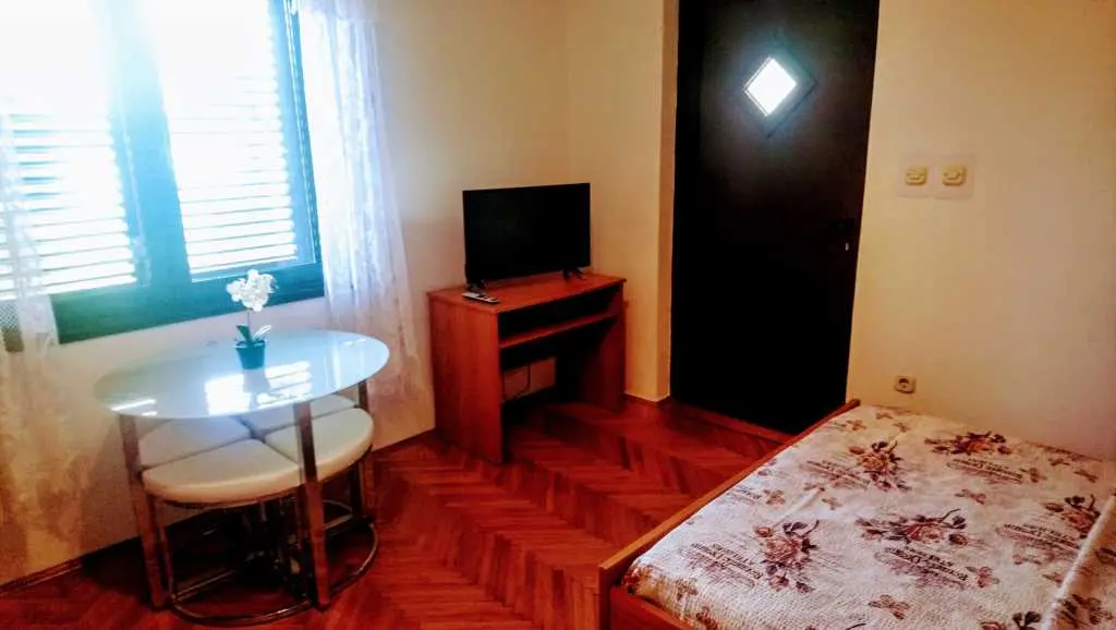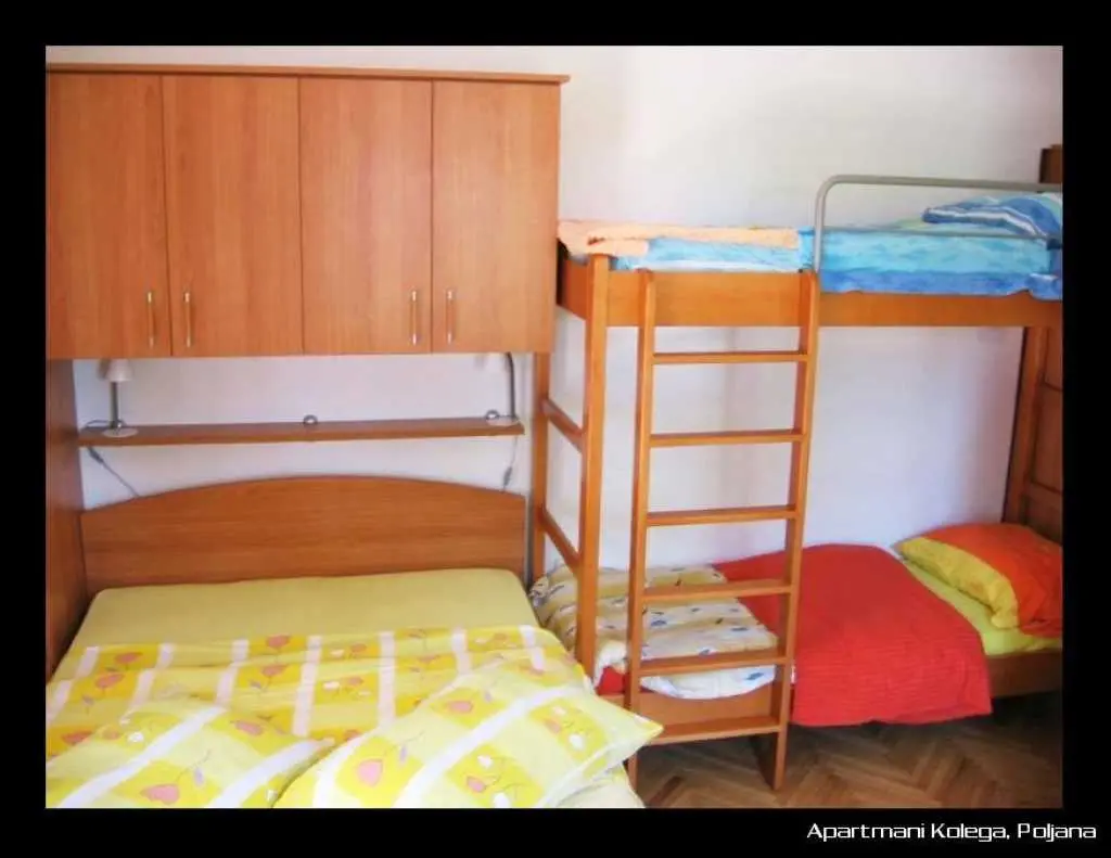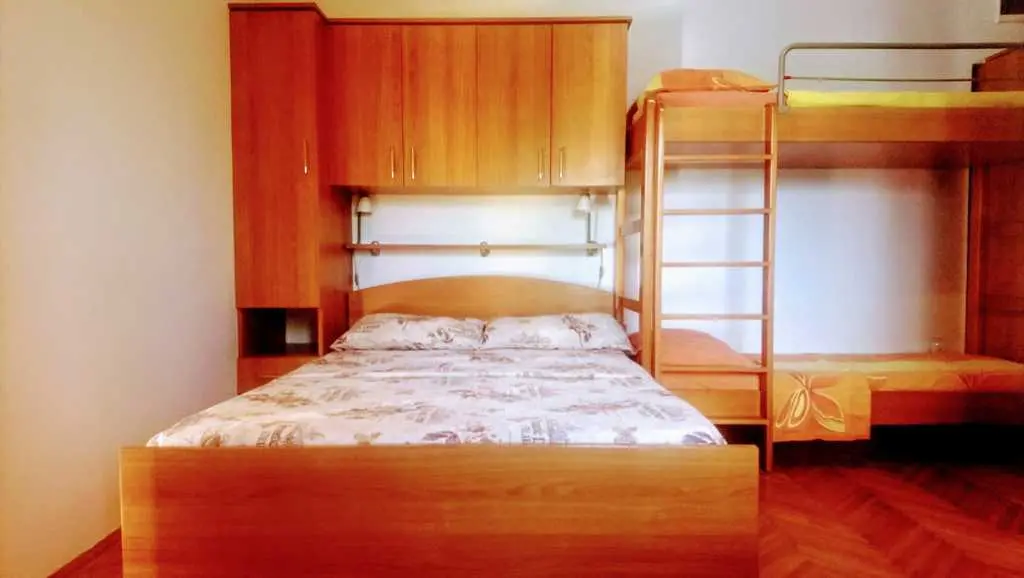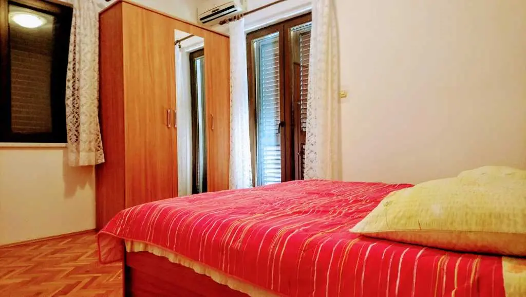 Apartma A4 + 2: Max. 6 oseb. Dve spalnici, dnevna soba, kuhinja, kopalnica. Vse sobe so klimatizirane. TV + SAT. Pralni stroj. Wifi. Balkon in terasa. Cena v sezoni (julij - avgust): 110 evrov na noč + turistična taksa (5 EUR na dan za odrasle). Oddaljenost od morja: 5 m. Apartma A4 + 1: Max. 5 oseb. Dve spalnici, dnevna soba, kuhinja, kopalnica. Vse sobe so klimatizirane. TV + SAT. Pralni stroj. Wifi. Balkon. Cena v sezoni (julij - avgust): 100 evrov na noč + turistična taksa (5 EUR na dan za odrasle). Oddaljenost od morja: 5 m. Družina studio A2 +2: Dve sobi - kuhinja in spalnica v enem, druga kopalnica. Zakonska postelja in pograd. Klima. TV + SAT. Pralni stroj. Wifi. Balkon. Cena v sezoni (julij - avgust): 55 evrov na noč + turistična taksa (5 EUR na dan za odrasle). Oddaljenost od morja: 5 m