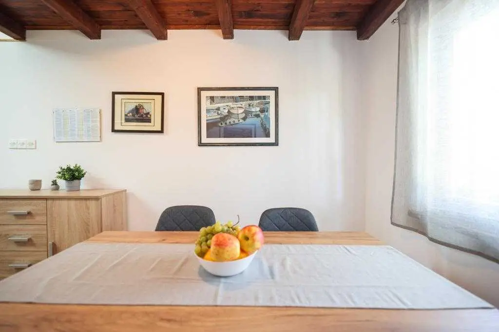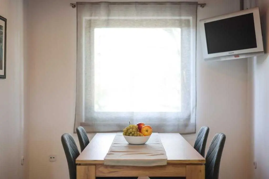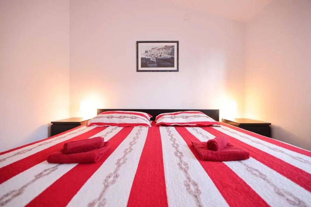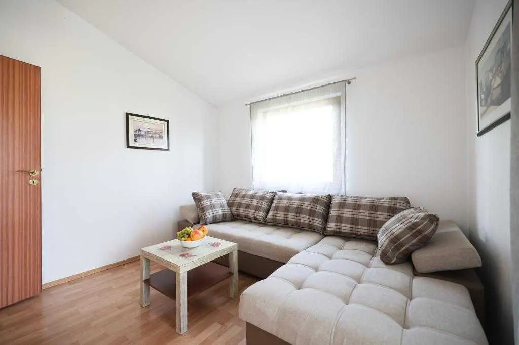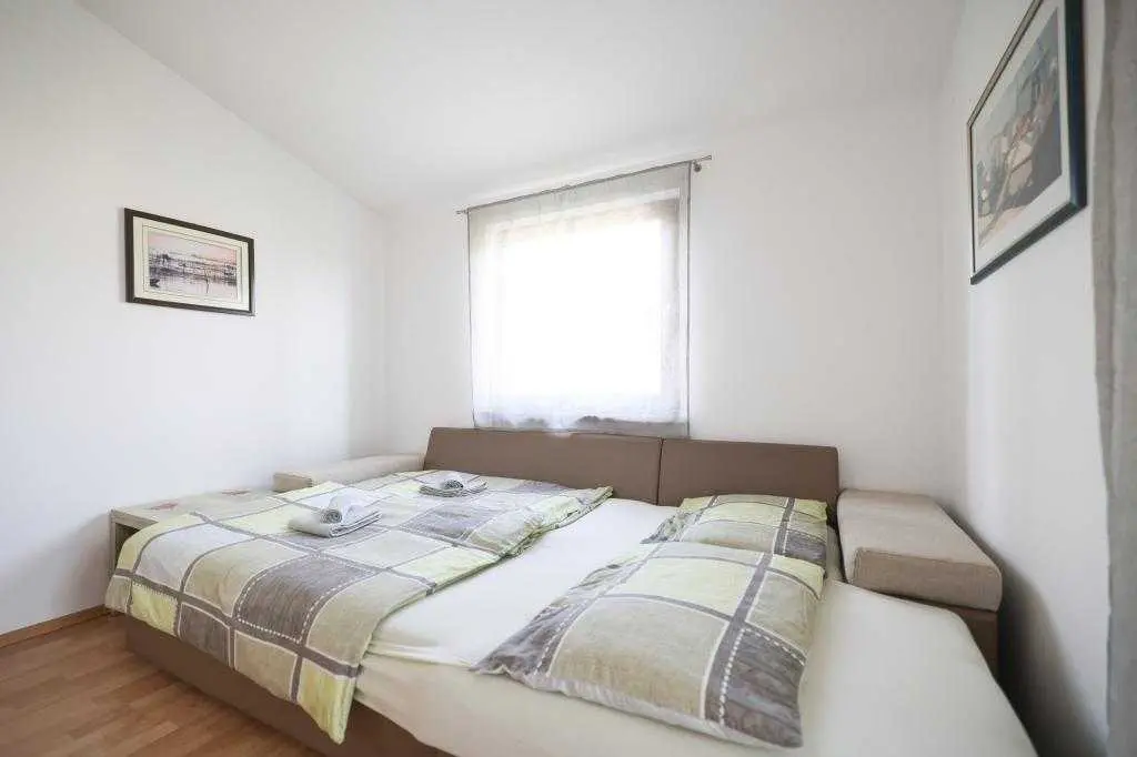 Čudovit in sodoben apartma za štiri osebe na otoku Vir je idealen za družinske počitnice. Nahaja se nekaj minut od plaže, ki je primerna za otroke, središče, kjer je sprehajalna cesta ob obali, pošta, cerkev, avtobusna postaja, ki je blizu trgovin. Stanovanje je 50 m2 in ima ločen vhod. Cena vključuje parkiranje, klimatsko napravo, celoten apartma, žar, poletni tuš, ki se nahaja na dvorišču. Sestavljen je iz dveh spalnic, kopalnice s tušem, kuhinje, dnevne sobe in terase. Nahaja se v mirnem delu otoka Vir in kljub temu imamo vse na dosegu roke, kot nalašč za idealen oddih.