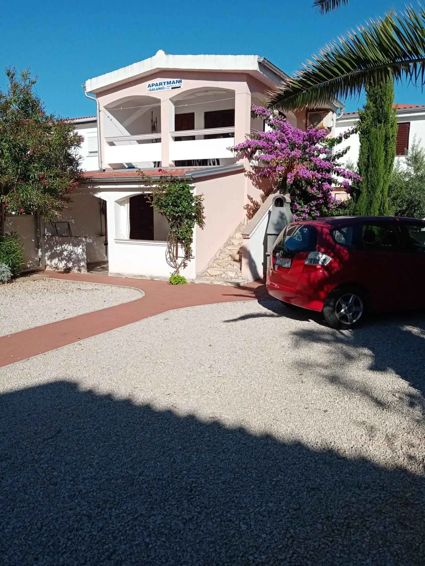 Apartmaji Galunic se nahajajo na čudovitem otoku Vir, ki je s celino povezan z mostom in je oddaljen cca. 22km od Zadra. Apartmaji se nahajajo v družinski hiši v mirni ulici in zelo blizu morja. V hiši je veliko zelenja in cvetja. Na dvorišču je parkirišče za avtomobile gostov. Vsak apartma ima svojo teraso, na dvorišču pa je terasa z žarom za druženje po potrebi.