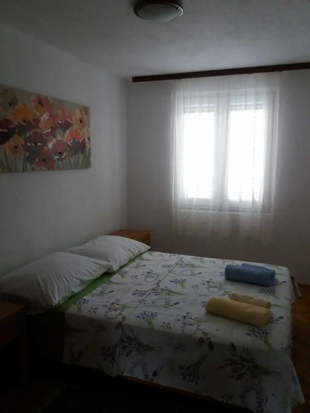 Apartma se nahaja v predelu otoka Vir imenovanem PREZIDA, v ulici Prezida XII. Ta del otoka Vir se nahaja na samem začetku otoka na južni strani. Stanovanje je veliko 55 m2 in zavzema celotno prvo nadstropje hiše. Hiša je 50m oddaljena od morja (vrsta 4) in plaže, ki je na koncu ulice. Do velike peščene plaže je tudi nekaj minut hoje. Apartma je sestavljen iz dveh spalnic in 4 postelj, kopalnice in WC-ja, kuhinje z jedilnico in velike terase s pogledom na morje. Spalnica in kuhinja imata izhod na teraso. Apartma ima ločen vhod, WiFi, klimo, TV, parkirišče, žar, v bližini so trgovine, restavracije in kavarne. Spoštovani obiskovalci, cena namestitve je na vprašanje! Zahvaljujemo se vam za zanimanje in se veselimo vašega morebitnega prihoda. Kontakt: 098 1777 235 Mirjana ali 091 5465 100 e-mail: enniok@gmail.com (kontaktirajte nas po telefonu ali e-pošti)