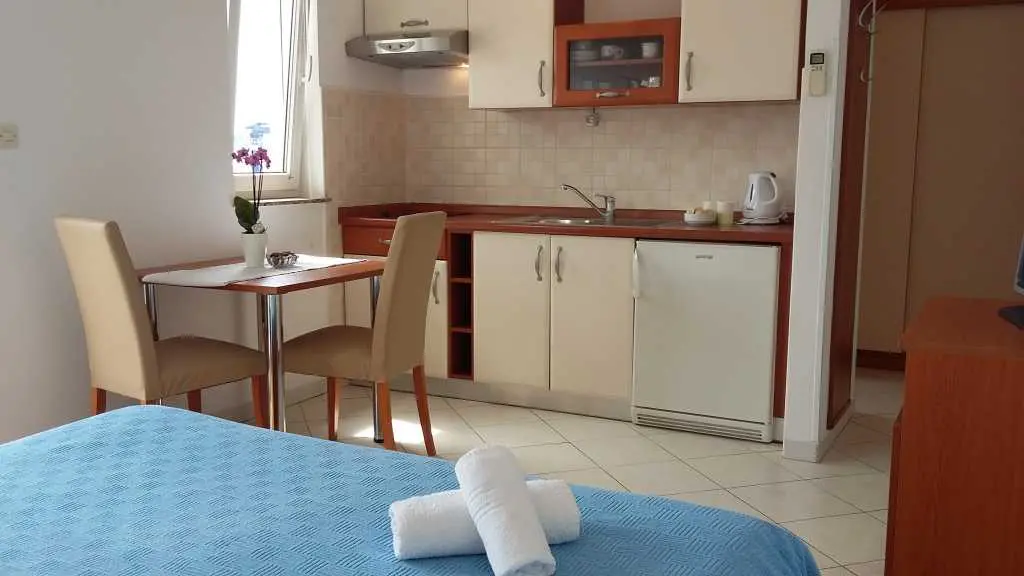 Nova sodobna počitniška hiša Kraljević 1, je bila zgrajena leta 2006. Kot je tudi ena soba hiša ponuja štiri apartmaje vsak, skupaj z dnevno sobo, SAT-TV, kuhinja, dve spalnici z zakonsko posteljo, tuš / WC in od enega do trije balkoni. Enotni soba in štirje apartmaji, vse v celoti klimatiziran in s čudovitim panoramskim pogledom, vam obljubim, prijetne počitnice, da se spomnimo. Hiša 2 ima 2 sobi. Cena za nastanitev vključuje brisače, posteljno perilo, brez listov plaže, opremljeno kuhinjo z vso potrebno posodo in jedilni pribor, porabo električne energije, vode in turistično takso. Žar je prav tako na voljo. Parkirni prostor za več avtomobilov je na voljo za hišo. Naslednja obstaja možnost uporabe pralnega stroja. Obstaja trg oddaljen le 100 m, več mesarske trgovine in restavracije, Caf?bars, modne trgovine, trgovine z živili, dve banke in pošta je njihov ambulanta, več menjalnicah in javni prevoz. Čudovita plaža je oddaljena le nekaj minut. Pristanišče za jahte in hitrost plovila se nahaja le 50 metrov od pred hišo. Vino, žgane pijače in olivno olje se lahko kupijo od lastnika hiše iz lastne proizvodnje. Za rezervacijo, izpolnite spletni prijavni obrazec, da nam pošljete e-pošto ali pa nas pokličite na telefon. Lahko pričakujemo, naš odgovor v naslednjih 24 urah.