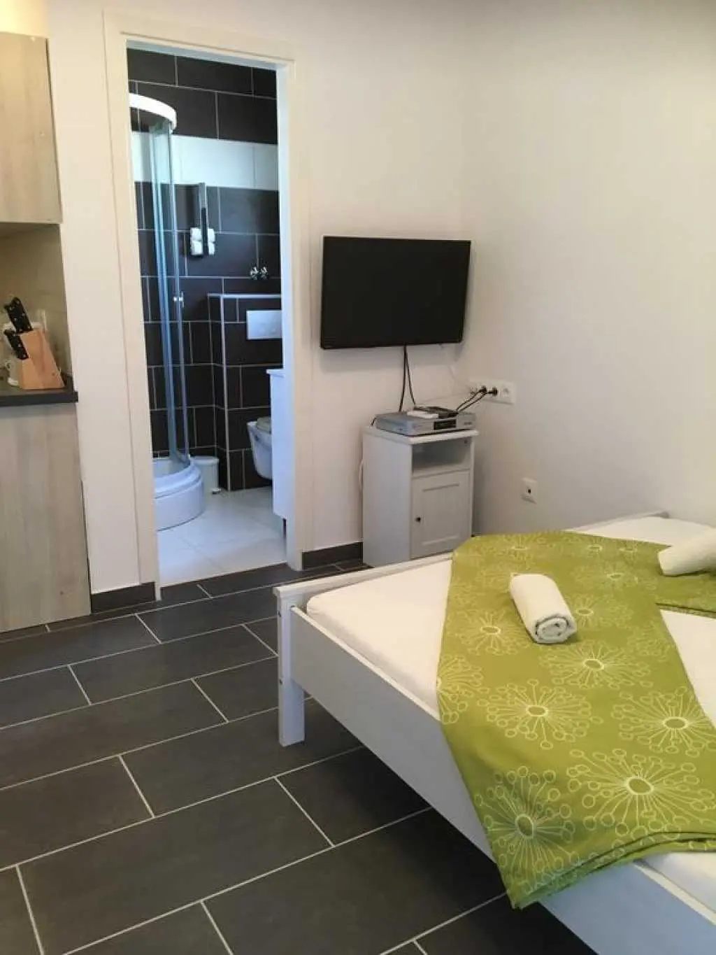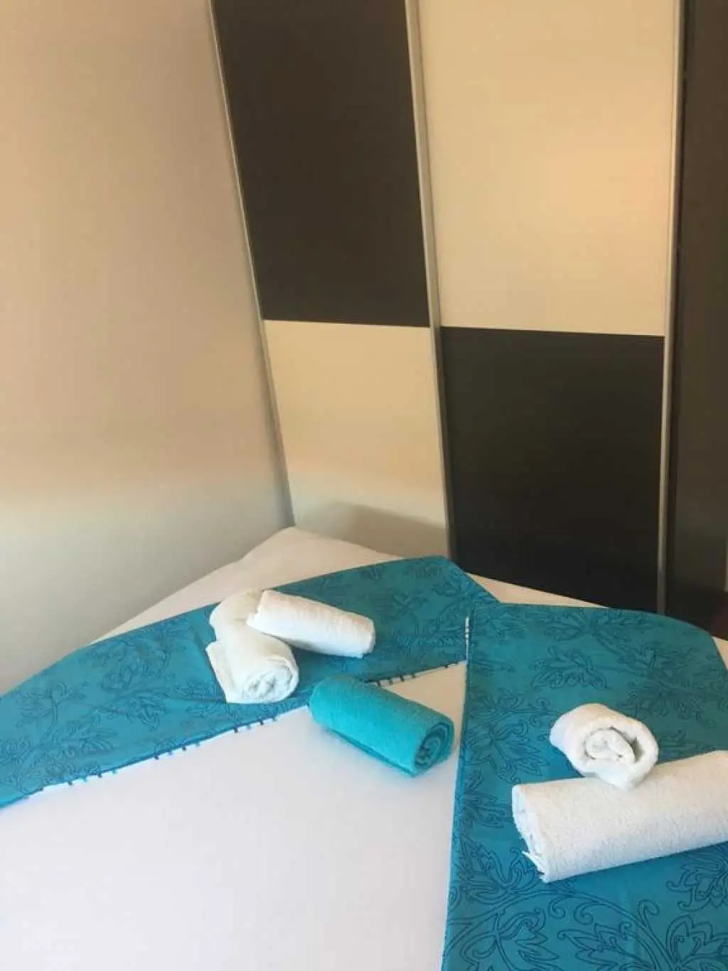Imamo 2 trisobna apartmaja 1 Trisobni apartma z 2 spalnicama in kuhinjo integrirano v dnevno sobo ter kopalnico 2 Trisobni apartma za do 6 oseb s kuhinjo integrirano v dnevno sobo in 2 spalnicama plus dve kopalnici
