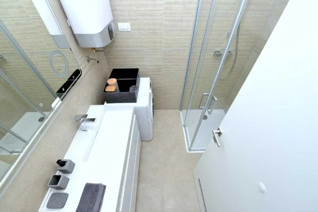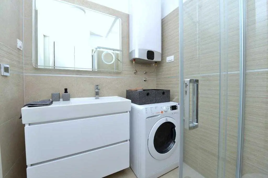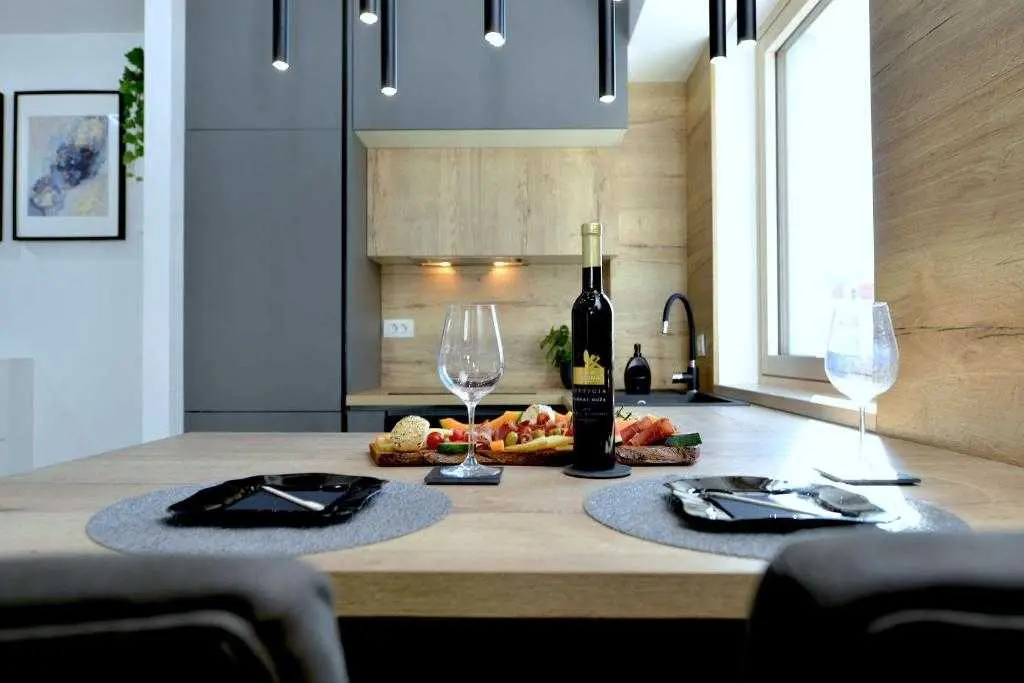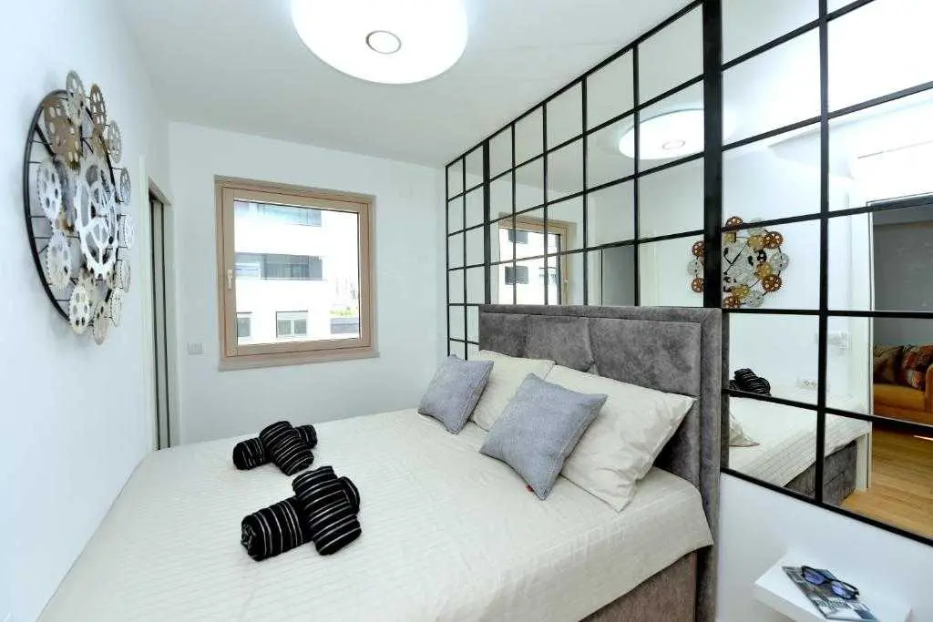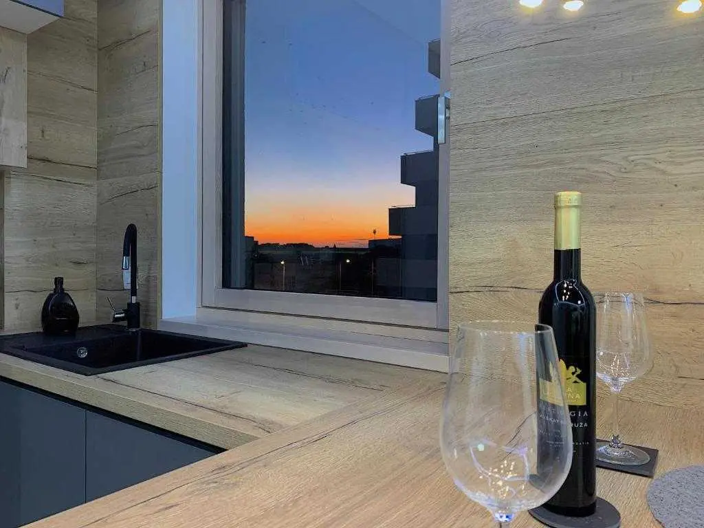 DELUXE Apartma Exclusive Residence je eden najboljših apartmajev v Zadru, luksuzno urejen, na fantastični lokaciji je idealen za raziskovalce jedra starega mestnega jedra ali poletne turiste, ki želijo imeti plažo v hoje. **** 4 STARS nastanitev **** • Popolnoma opremljen • • Nov sodoben zgradbeni kompleks • • Klima X2 • • Brezplačno parkiranje v zasebni garaži • • Hitri internet • • Aparat za čaj in kavo • • HD TV z ravnim zaslonom 160 cm • • Pralni / sušilni stroj • • Pomivalni stroj • • Velika zakonska postelja • Apartma ima 1 spalnico z veliko zakonsko posteljo, klimatsko napravo in veliko omaro. Kuhinja je popolnoma opremljena z aparatom za kavo, grelnikom za vodo, pečico, štedilnikom, hladilnikom itd. • Pralni in sušilni stroj / V času bivanja lahko gostje operejo perilo v apartmaju in uporabljajo tudi sušilni stroj. Pomivalni stroj • Vrhunske rjuhe na zakonski postelji iz apartmajev Sateen imajo v stavbi zasebno brezplačno parkirno mesto v garaži, brezplačna parkirna mesta pa lahko uporabljajo tudi zunaj. Posteljnino in brisače dobimo tudi mi. Uporabljamo profesionalno storitev čiščenja, tako da je apartma v celoti pripravljen in očiščen pred prihodom gostov. • Z okna apartmaja imajo gostje ponoči zelo lep razgled na sončni zahod. V bližini apartmaja je 5-10 minut hoje družinska plaža Kolovare z igrišči, kavarnami, restavracijami, igriščem za odbojko itd. Tudi do jedra starega mesta je 5-10 minut hoje. • Apartma se nahaja v tretjem nadstropju z 2 dvigaloma, garažno mesto je 5 metrov od dvigal. • Supermarket, kavarna, slaščičarna so v isti stavbi. • Brez dodatnih stroškov.