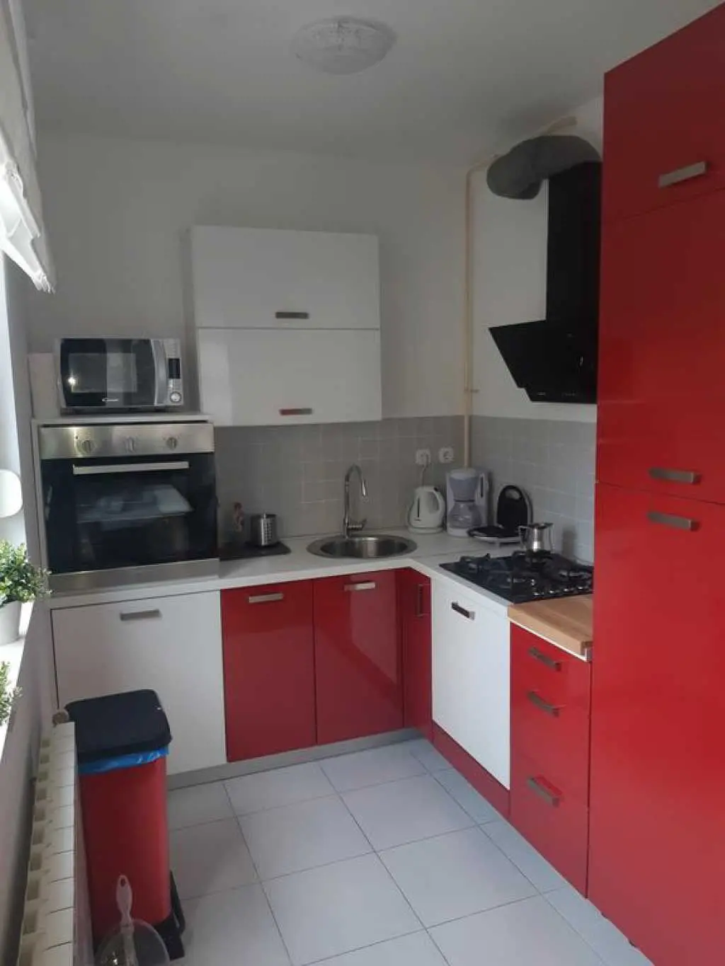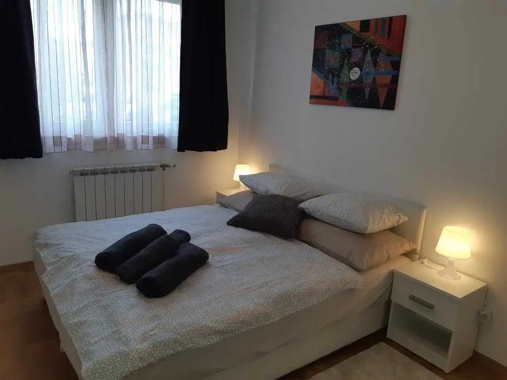 Kratkoročno/dolgoročno najamemo čudovit nov trendovski apartma s 5 zvezdicami, popolnoma opremljen za do 4 osebe (z otroško posteljico). Stanovanje je v mirni in tihi zaprti soseski, a v bližini vseh pomembnih mestnih znamenitosti. Gostom je na voljo lastno parkirišče v garaži z dvigalom do apartmaja. V krogu 100-200 metrov se nahajajo trgovine, trgovine, lekarna, picerija, igrišče in kozmetični salon. Avtobusno in železniško postajališče sta le 300 m stran.
