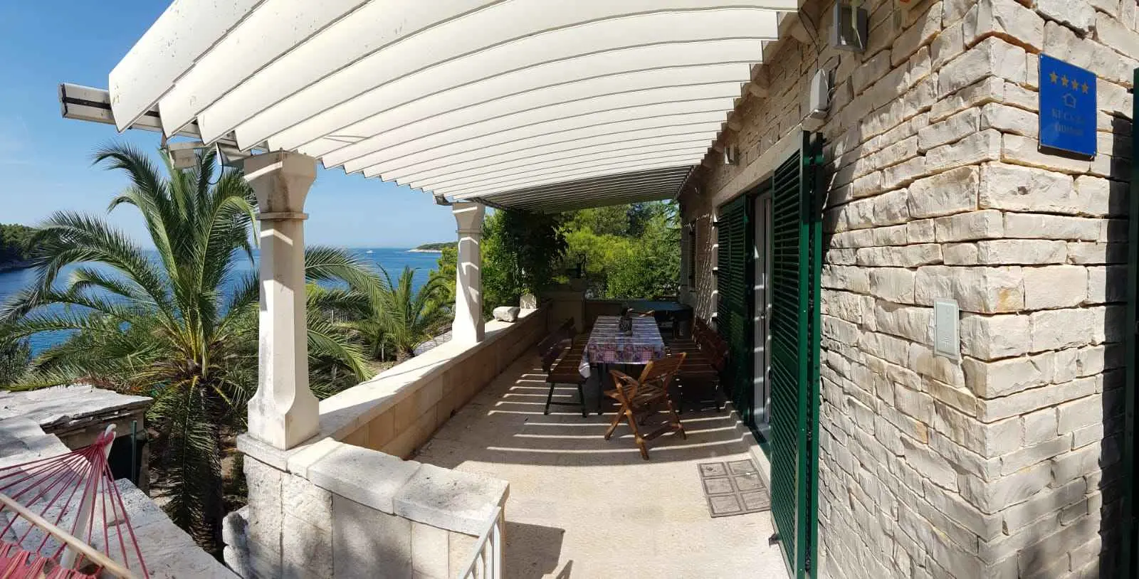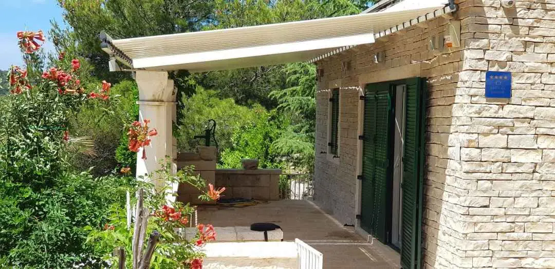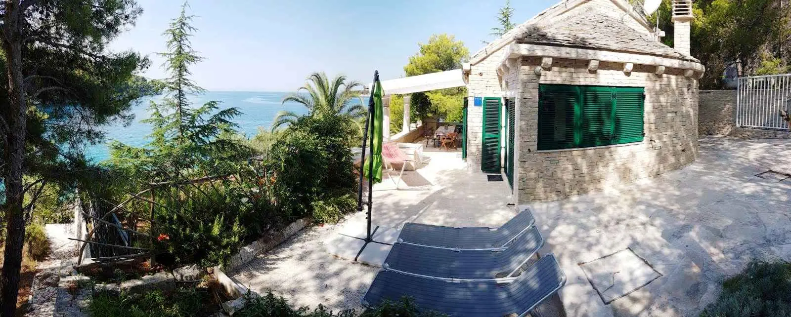 Villa Eremita je ekskluzivna avtohtona kamnita počitniška hiša s 4 ****. Samostojna hiša za samostojno uporabo z ograjenim dvoriščem, tik ob obali nad morjem, 10 metrov od terase Vile Eremite. Plaža ob hiši je ena izmed 10 najlepših na Jadranu in idealna za ljudi, ki iščejo mir in samoto. Plaža je kamnita, ravna in gladka z naravnimi stopnicami do vhoda v morje, krasijo jo ležalniki za sončenje in sončenje ter zasebni tuš samo za goste. Obdan je z borovim gozdom ob morju v zalivu Lučice-Koramaslinova (robinzonska plaža Koromaslinova), na edinstveni lokaciji na jugozahodni obali otoka Brača. Azurno modra, čisto in toplo morje, borov gozd. S terase vile je čudovit pogled na morje, otoka Hvar in Vis. Hiša je oddaljena 600 metrov od zaliva Lučica in restavracij ter 2,2 km od Milne in vseh večjih turističnih objektov. Namestitev je primerna za družinske počitnice ter za ekskluzivne in ekološko ozaveščene goste, ki si želijo sprostitev od trdega intelektualnega dela, odmaknjenost, zasebnost, mir in tišino. Hišni ljubljenčki so dobrodošli. Villa Eremita je samostojna hiša s 112 m2 neto bivalne površine in posteljno kapaciteto za 2 do 8 (6+2) oseb. Hiša je sestavljena iz pritličja in mansarde, je energetsko neodvisna, - Ekološko solarno ogrevanje sanitarne vode. - Toplotno in zvočno izolirana, energijski razred A+++. V pritličju hiše se nahajajo: spalnica za dve osebi, manjša spalnica za eno osebo, velika dnevna soba s kotno usnjeno sedežno garnituro in kot dodatno ležišče, popolnoma opremljena kuhinja z vsemi električnimi napravami, posodo in posodami ter kopalnica (WC/tuš kabina). Skozi veliko drsno stekleno steno se dostopa na teraso, ki je pokrita s pergolo. Izjemen pogled na sredozemski vrt, azurno morje, zaliv Koromaslinova ter otoke Hvar, Vis in Peklenske otoke. V mansardi je spalni del, mini kuhinja s posodo za kuhanje in prehranjevanje, vsemi malimi kuhinjskimi aparati in prostorom za uživanje ter kopalnica (wc/tuš kabina). V spalnem delu je dvignjena postelja za dve osebi, postelja za eno osebo, dve zračni postelji in otroška posteljica (brezplačno). Gostom je na voljo: - prostoren, urejen vrt v velikosti 540 m2 z mediteranskim vrtom, oljkami, rožmarinom, tamarisom, sivko, okrasnimi grmi in drevesi ter zelišči - origano, meta, žajbelj, lovor in peteršilj za popestritev vaše kulinarike sposobnosti in doživite svoje brbončice kot hedonist. - Pokrita terasa 27 m2, razširjena zunanja dnevna soba, pokrita senčnica s pergolo, dve mizi, 2 klopi in stola, za druženje in obedovanje. - Terasa za sončenje 30 m2 z ležalniki in mornarskim ležalnikom ter velikim senčnikom. S kamnom tlakovano dvorišče in zasebno parkirišče za 2 avtomobila ter zasebni brezplačen privez za čolne do 16 metrov. - Na plaži, 10 metrov od vile, so ležalniki in senčniki ter zaseben tuš samo za goste Vile Eremita. Opombe in cene: - Klimatske naprave so nameščene v pritličju v spalnici 2/1, dnevni sobi in mansardi. Z nastavitvijo temperature hlajenja na 6 stopinj C pod zunanjo temperaturo - Odda se cela hiša. Minimalno bivanje je 7 noči. - Maksimalno število oseb vključno z otroki je 8 (6+2) - Cena velja za 8 oseb. Majhni hišni ljubljenčki so brezplačni v svojih posteljicah. Psi ne uporabljajo postelj in drugega pohištva v vili. Obstajajo sklede za hrano in vodo. - Priznavamo popuste za bivanje samo 2-4 gostov 5% in bivanje nad 10+ noči 5%, za zgodnje rezervacije 5%. - V ceno so vključeni tudi vsi davki. Brez dodatnih stroškov. - Dobrodošlo presenečenje. Domačini bivajo v ločenem prostoru-kleti in motijo goste. Gostom smo na voljo 24 ur na dan vse dni bivanja. Na željo gosta so na voljo storitev pranja perila, medicinsko-športno-akupresurna masaža celega telesa z aromatičnimi olji, klinična bioenergetika in refleksna masaža stopal. Obstaja tudi možnost organiziranja izletov in nakupa avtohtonih bračkih proizvodov: oljčnega olja, sira, rib in morskih sadežev, vina in avtohtone sezonske zelenjave. Osamljena plaža je oddaljena 10 metrov od vile Eremite. Samo gostje vile brezplačno uporabljajo ležalnike, senčnike, zasebno prho in sidrišče za čoln. Ob rtu Zastup se nahaja atraktivna podvodna jama Zmajevo uho, zelo zanimiva za potapljače. Mesto Milna ima ACI marino, Turistično informacijski center, številne restavracije, nekatere imajo organizirano dostavo hrane in pijače, kavarno in koktajl bar, trgovine s hrano in pijačo, pošto, lekarno, menjalnico, spominke. trgovina, čoln, avto, izposoja koles, potapljaški center. Organizirani izleti v samostan Blaca, po otoku Braču, - Vidova gora, najvišji vrh otoka z edinstvenim pogledom na mesto Bol in plažo Zlatni rat - mesto Škrip z muzeji