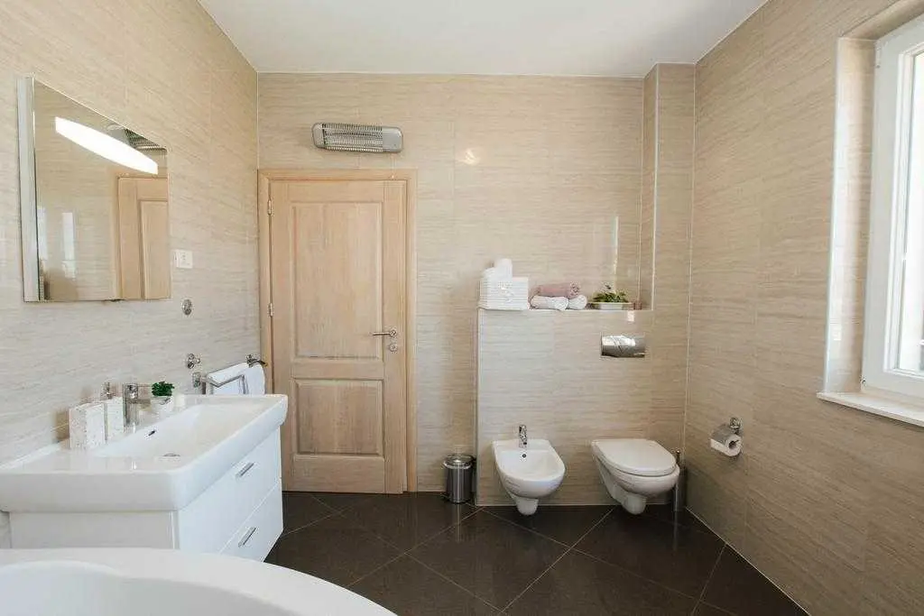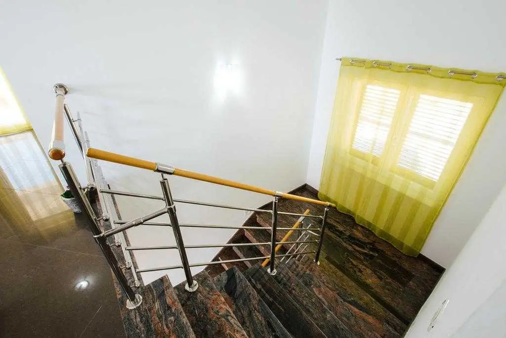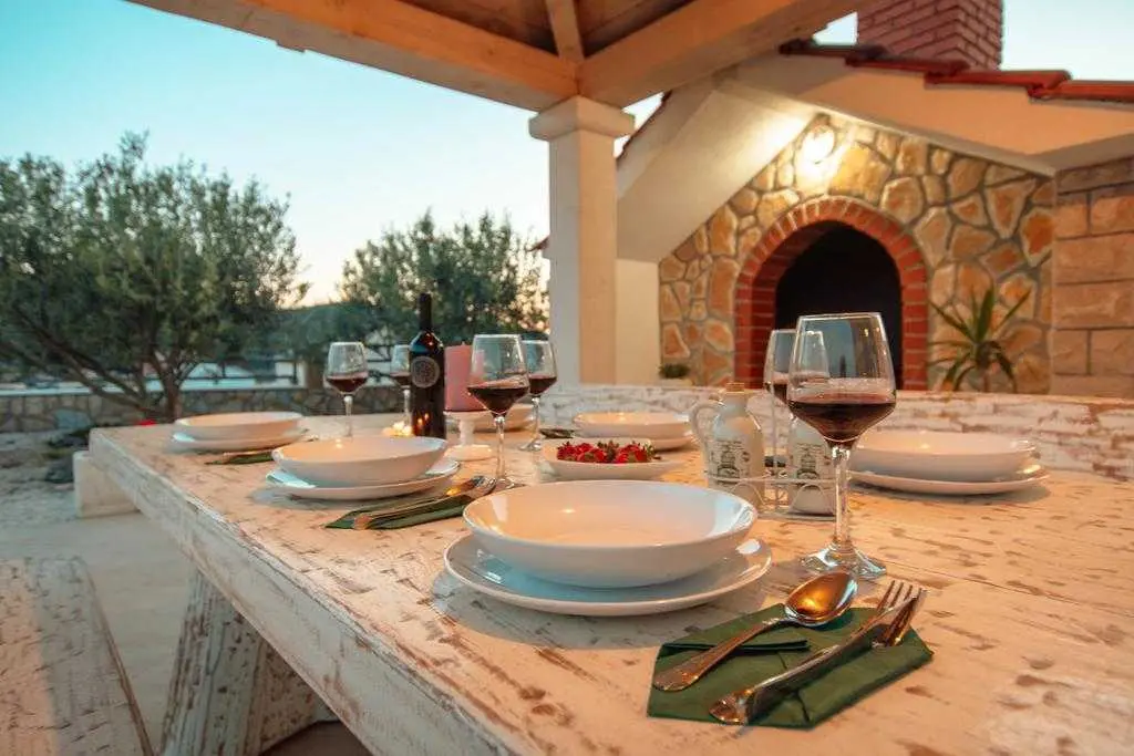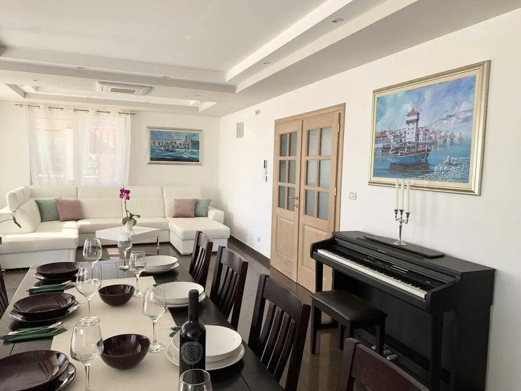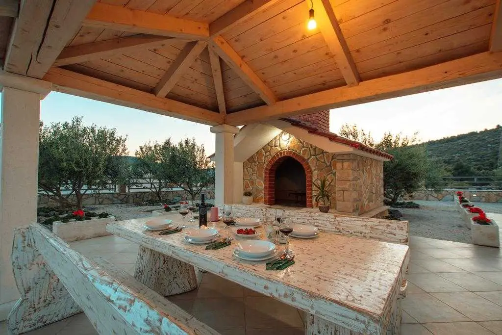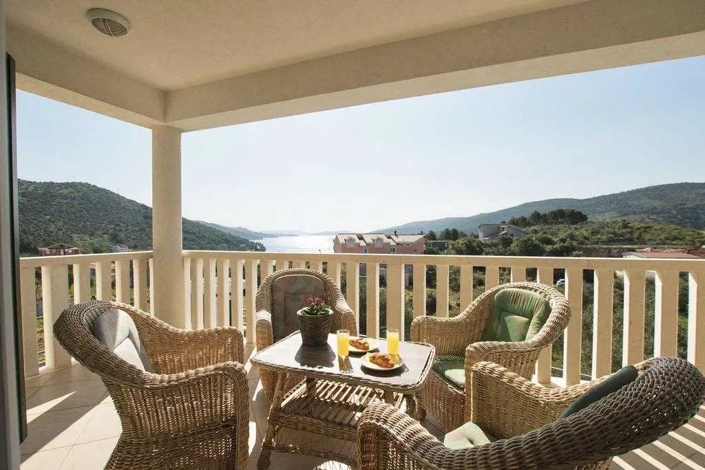 Ta lepa in zelo udobna hiša z bazenom se nahaja na hribu v dalmatinskem mestecu Marina. Sodobno opremljeno in udobno. Sestoji iz pritličja, kjer je kopalnica, kuhinja in dnevna soba z izhodom na bazen. V prvem nadstropju so štiri spalnice, kopalnica, pralni stroj in dva balkona. Na prostoren vrt z velikim kaminom, si lahko pripravite jedi in žar in uživajte v zelenju in razgled na zaliv. V marini so čudovite peščene plaže in Trogir, mesto pod zaščito Unesca, je le 13 km stran.