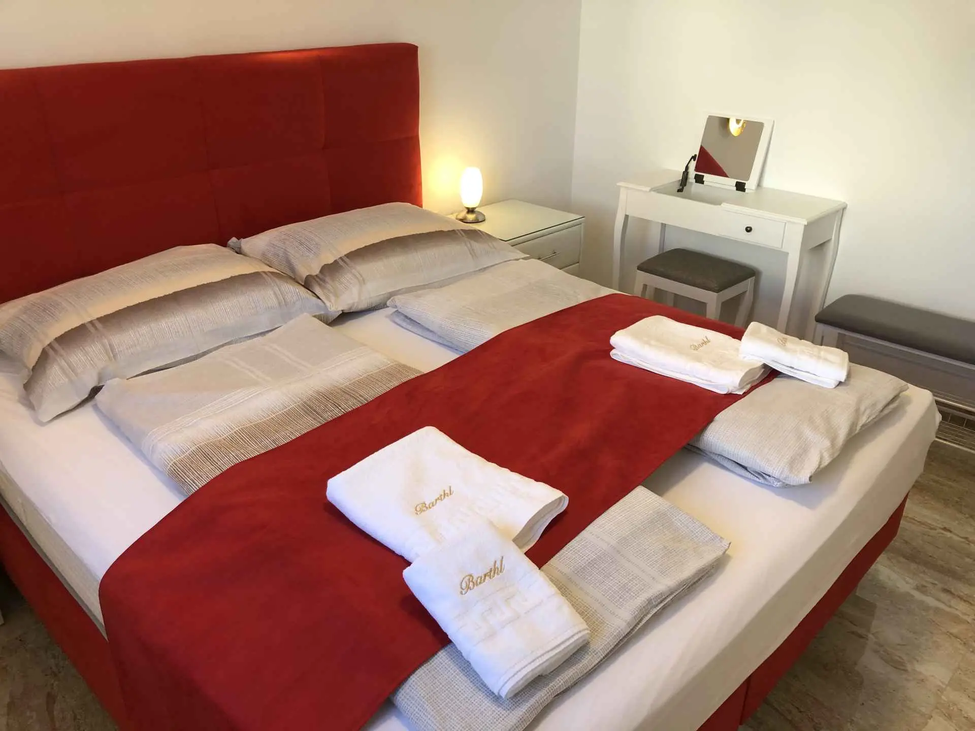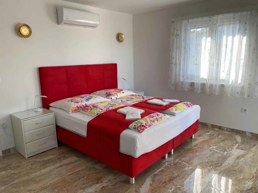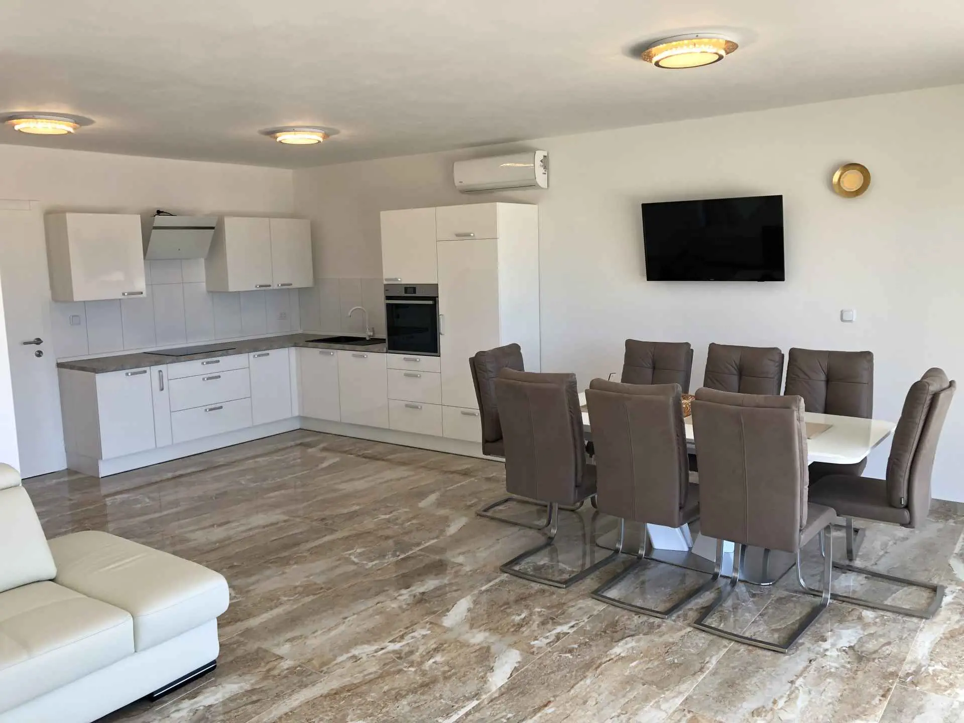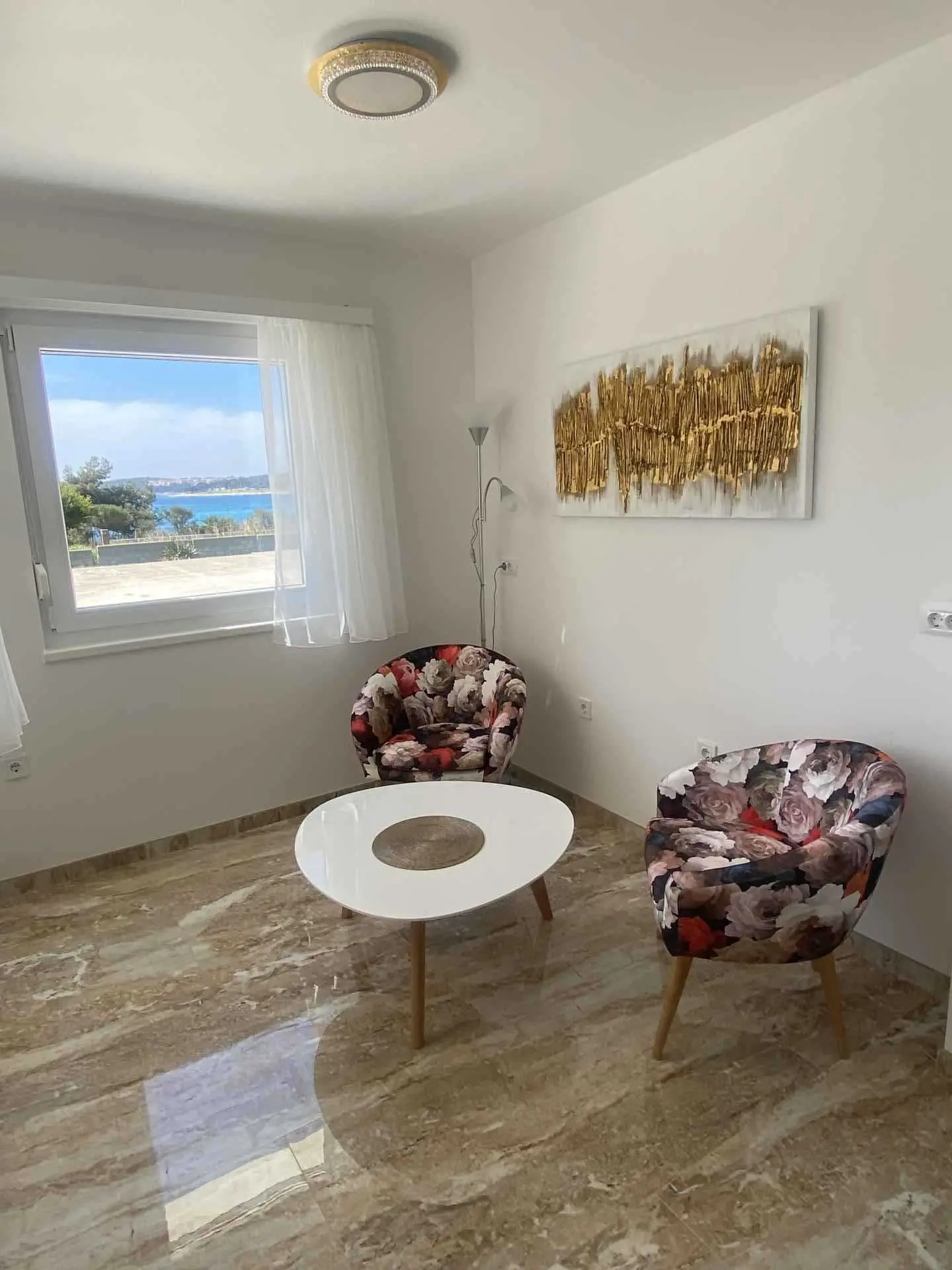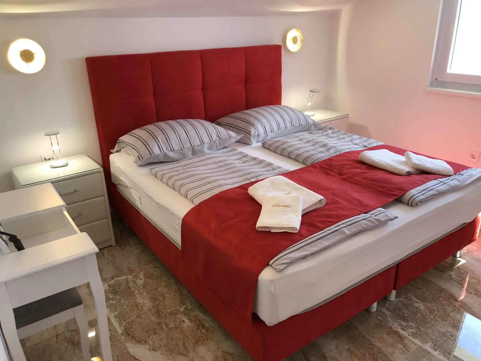 Celotno nadstropje naše nove luksuzne vile na plaži za odrasle in najstnike z veliko dnevno sobo, 4 spalnicami in 2 kopalnicama. Neposredno pred vrtom in našo zasebno parcelo na plaži z brezplačnimi ležalniki pod mogočnimi borovci. Vsako nadstropje hiše je luksuzni počitniški apartma z veliko dnevno sobo, popolnoma opremljeno kuhinjo DAN, 4 spalnicami s širokimi zakonskimi posteljami z vzmetnico. Močna usnjena dnevna soba, v kateri je vgrajena visokokakovostna raztegljiva zakonska postelja. Dve luksuzni kopalnici, shramba itd. Ležalniki pod borovci na naši mirni, zasebni parceli na plaži neposredno na eni najlepših plaž v Istri so absolutni vrhunec za naše goste. Ena najlepših skalnatih plaž v regiji, ki jo priporoča turistična zveza, se nahaja tik pred našo zasebno parcelo na plaži. Ker se skalne plošče zelo rahlo spuščajo v morje, kot bazen, večina naših gostov, tudi z otroki, raje izbere to plažo kot pogosto prenatrpano peščeno plažo. Fantastično mirna lokacija neposredno na plaži in popolna infrastruktura v nekaj sto metrih. Okolju prijazen solarni kotel in toplotne črpalke zrak-voda ter bele termalne fasade za optimalno zaščito podnebja in prijetno bivalno okolje. Najvišja kakovost pitne vode iz vseh vodovodnih cevi. Stojala za kolesa so na voljo v vsaki vili na plaži, v bližini pa je tudi poceni izposoja koles. Celo polnilna postaja za električne avtomobile je oddaljena le 300 m. Turistično združenje nas je večkrat nagradilo za "najboljšega najemodajalca Medulin". Naše vile na plaži Medulin - Pošesi vam zagotavljajo popolne in brezskrbne počitnice brez vsakodnevnega iskanja parkirnega mesta. Na čudoviti kopalni plaži lahko uživate v čistem in toplem morju v zavarovanem zalivu Medulin, tik ob kampu Kazela, na ležalnikih pod mogočnimi borovci na naši zasebni parceli na plaži. V le nekaj sto metrih ste na beli peščeni plaži "Bijeca", raju za majhne otroke. Naše vile se nahajajo v regeneracijski coni, vse sobe so nekadilske in hišni ljubljenčki niso dovoljeni, zato so idealne za alergike in astmatike. Čisto morje na peščenih, prodnatih in skalnatih plažah medulinske riviere, senčni kotički pod mogočnimi borovci in fantastičen razgled na medulinski zaliv s čudovitimi otoki vam zagotavljajo optimalno sprostitev. Novo naselje Posesi se nahaja tik ob plaži s čistim morjem in meji na kamp Kazela s čudovitim bazenskim območjem in novim luksuznim hotelom z notranjim bazenom. Zato je popolna infrastruktura oddaljena le nekaj sto metrov. Poleg tega se v bližini peščene plaže nahajajo sanje vseh otrok z družinskim parkom. Medulin - Pošesi z neverjetnimi 2700 sončnimi urami na leto je nova luksuzna destinacija med kampom Kazela in novim luksuznim hotelom. Popolna infrastruktura, čudovito blago sredozemsko podnebje, čisto in mirno morje v zaščitenem medulinski zalivu. Medulin je zeleni počitniški raj na Jadranu, zaščiten zaliv s peščeno plažo, neštetimi otoki in zalivi s peščenimi, prodnatimi in skalnatimi plažami. Poleg tega je na voljo veliko športa, kulture, nakupovanja, sprostitve in zabave. Poceni turistični let vam pokaže najlepšo obalo na Sredozemlju, v 8 km oddaljenosti pa je čista kultura v Puli. Kje drugje lahko najdete več kot 80 km obale z neštetimi kopalnimi zalivi in otoki. Vse z modro zastavo. Pravi raj za prosti čas, ki so ga že rimski cesarji uporabljali kot poletno rezidenco. Ostanke te palače na Vizuli si lahko še danes ogledate. Medulinska riviera vam ponuja nekatere najlepše plaže na Jadranu, ki vas bodo zagotovo očarale s svojo raznolikostjo. Pri nas boste našli peščene, prodnate in skalnate plaže ter prijetno senco pod stoletnimi borovci in skoraj robinzonsko samoto na plažah desetih otokov. Skrivnostne plaže na rtu Kamenjak so bile uvrščene na seznam najlepših plaž na svetu. Zaradi odgovornosti želimo poudariti, da notranjost ni primerna za osebe, težje od 130 kg.