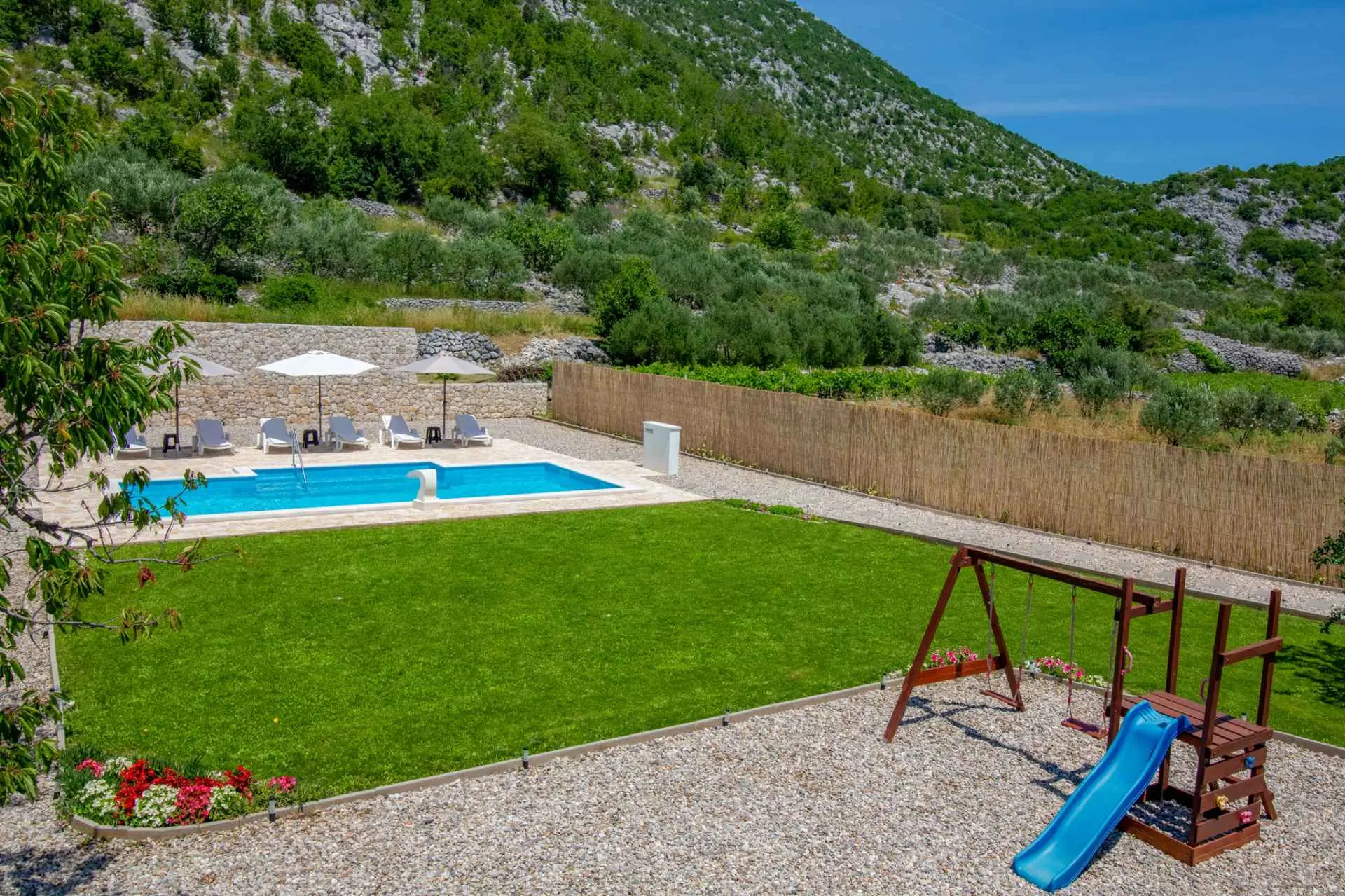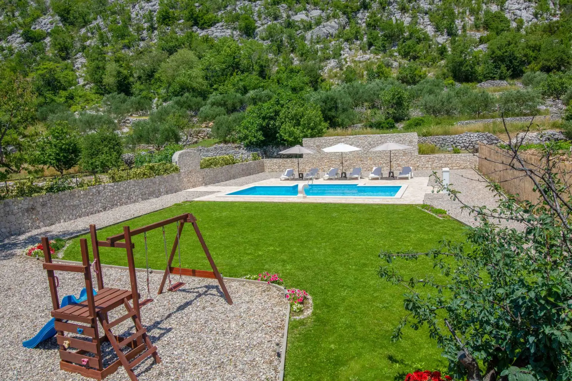 V majhni čudoviti pobočni vasici Seoca, blizu mesta Omiš, le kilometer od cestninskih postaj A1 (Blato na Cetini) boste našli presenetljivo razkošno vilo Elin. Ta lokacija je srce republike Poljica, ki je vladala tej regiji od 13. stoletja do okupacije Napoleonove vojske v 19. stoletju, na tem območju so se vodile številne pomembne bitke. Danes je to oaza miru, Srednja Dalmacija. Če se želite odpočiti od preobremenjenih cest, ki iščejo mir, pesem ptic in vetra ter čudovito naravo, potem je ta oaza prava izbira za vas. Zaradi lege vile tik ob južnem vznožju gore Mosor. Uživali boste v soncu in čudoviti pokrajini ves dan. Na severni strani vile Elin v naravnem okolju je prostor 750 m2 v popolni zasebnosti z velikim bazenom 41m2, zunanjim tušem, velikim zelenim travnikom, ki je primeren za vse vrste dejavnosti, otroškim igriščem in zgrajenim žarom kamna. Na bližnji plaži na reki Cetini (3 km) se lahko osvežite v čisti vodi te čudovite reke in uživate v nepozabnem raftingu, kanjoningu in zip lineu. V bližnjih obalnih mestih: Omiš, Baška Voda, Makarska (le 20-30 minut vožnje) lahko uživate v čudovitem čistem Jadranskem morju in plažah, najdete različne kulturne, zgodovinske, zabavne vsebine in okusite tradicionalne hrvaške jedi, nato pa se umaknete v hribe za spokojnost. Naše prijazno osebje vam bo na voljo, da vam svetuje za enodnevne izlete in destinacije, ki jih je vredno obiskati.