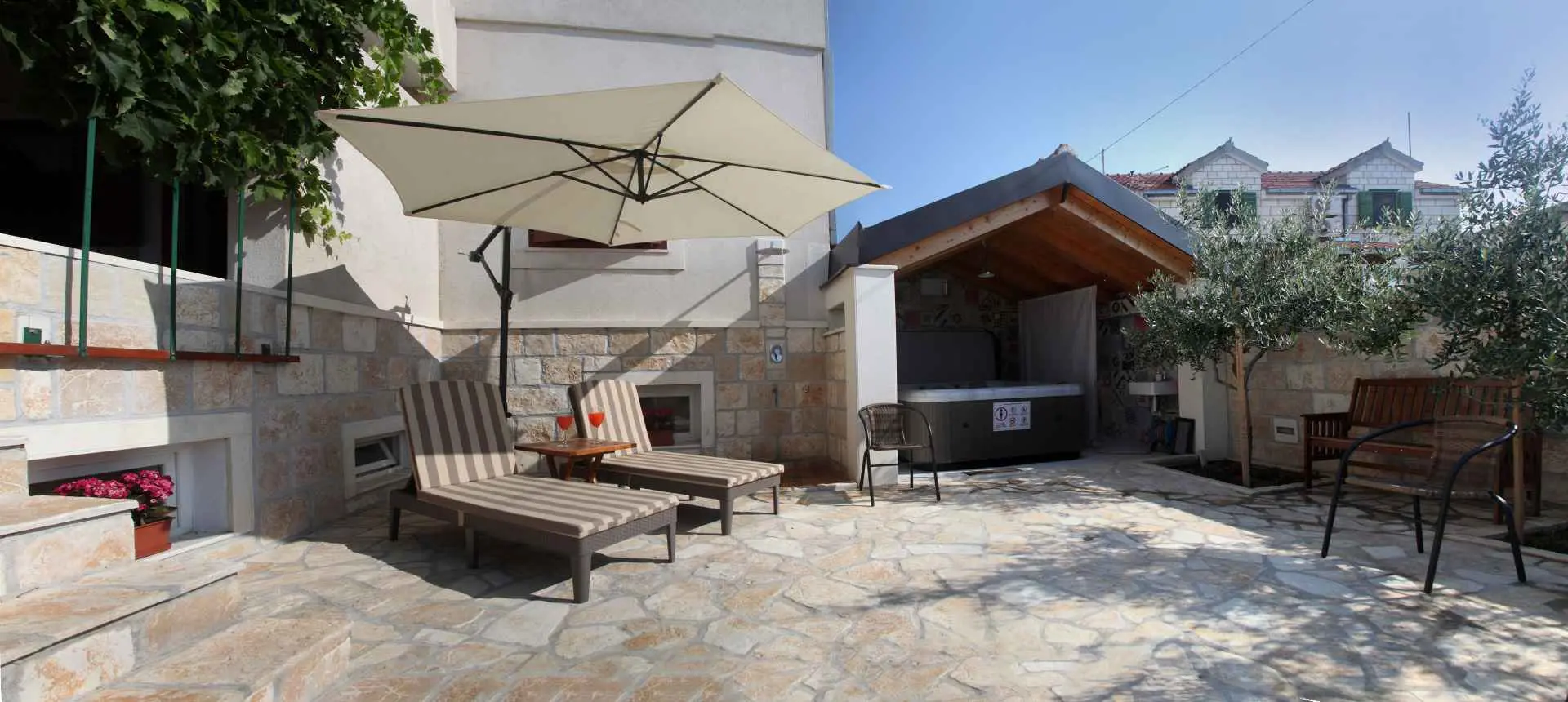 Villa Alissa se nahaja v Mravincah, majhni in mirni vasici na hribu, le 6 km od Splita. Hiša ima dih jemajoče razglede in je zgrajena iz naravnih materialov, kjer prevladuje kamen, okna, vrata, pohištvo, ki je vse ročno izdelano iz čistega lesa. Vila se nahaja na zemljišču velikosti 400 m2, obdanem s starodavnimi kamnitimi zidovi, vrtom, ekološkim zelenjavnim vrtom, velikimi terasami, kjer se lahko sončite ali sprostite v popolni zasebnosti tudi zvečer. Hiša ima dve etaži in ima parkirišče za 4 avtomobile. Smo okolju prijazni in otroci so dobrodošli v hiši. Dobrodošli!