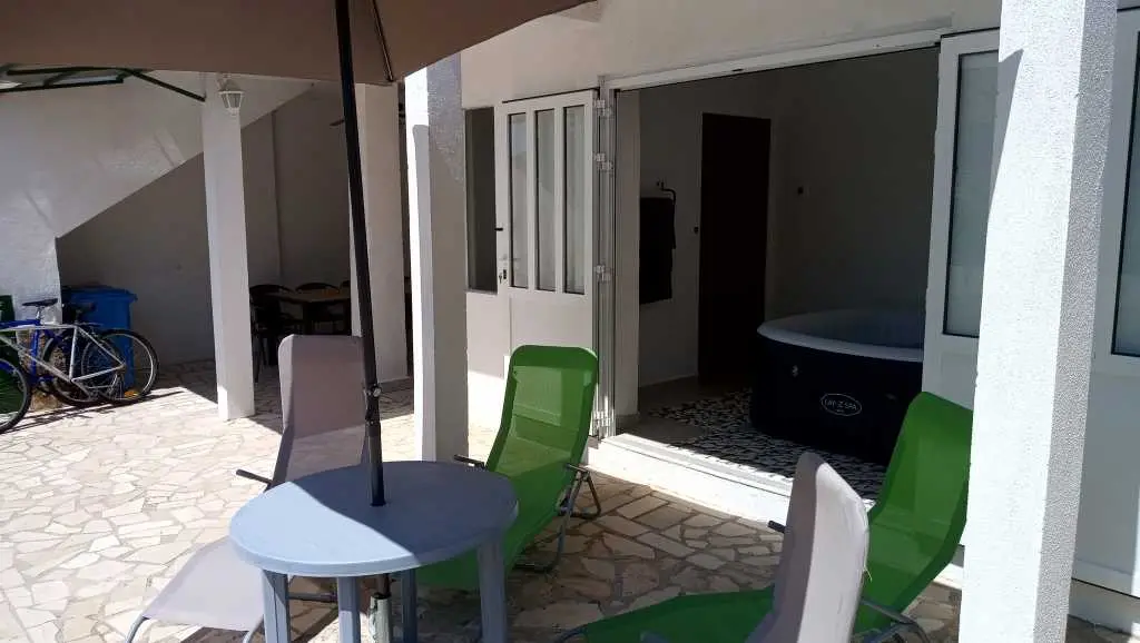Najamem celotno hišo (do 8 oseb) v Vinišću, ki se nahaja v srednji Dalmaciji. Do Trogirja je 20 km, od Splita 50 km, od Šibenika 50 km. Hiša je oddaljena od morja 30 m, od najbližje plaže 40 m in je sestavljena iz dveh nadstropij. Obstaja kuhinja (popolnoma opremljena; mikrovalovna pečica, aparat za kavo, pomivalni stroj, hladilnik, grelnik vode) z jedilnico. Dnevna soba ima dva kavča (en kavč je postelja za 2 osebi, drugi za 1 osebo), satelitsko televizijo in CD radio. Hiša je opremljena z internetno povezavo. V spodnjem nadstropju imajo gostje klimatsko napravo, v sobah pa so ventilatorji za hlajenje. Obstajajo tri spalnice, dve kopalnici s tušem (ena v nadstropju, ena v pritličju s pralnim strojem). Pred hišo je vrt površine 180 m2, kjer je žar in zunanji tuš. V nadstropju je pokrita terasa velikosti 20 kvadratnih metrov s stoli in mizo, v pritličju pa je tudi terasa velikosti 20 kvadratnih metrov z mizo in stoli na dvorišču. Restavracija, pošta, trgovina, supermarket, kavarna ... se nahajajo od hiše od 100 do 200 m. Lastniki živijo na drugem naslovu, tako da je hiša v celoti na voljo gostom. Vsem gostom je na voljo kajak in kolesa (vključena v ceno). Čas prihoda: 14h | Čas odhoda: 10h | Končno čiščenje vključeno v ceno: Da